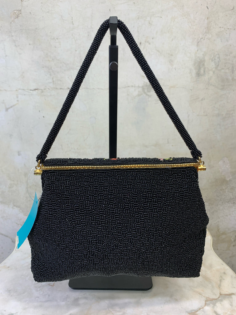 VINTAGE Black 1950s/60s Beaded Floral Purse