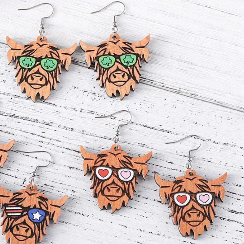 Cow Head with Sunglasses Earrings | 2 Styles - HEARTS is backordered and will ship as soon as it is back in stock.