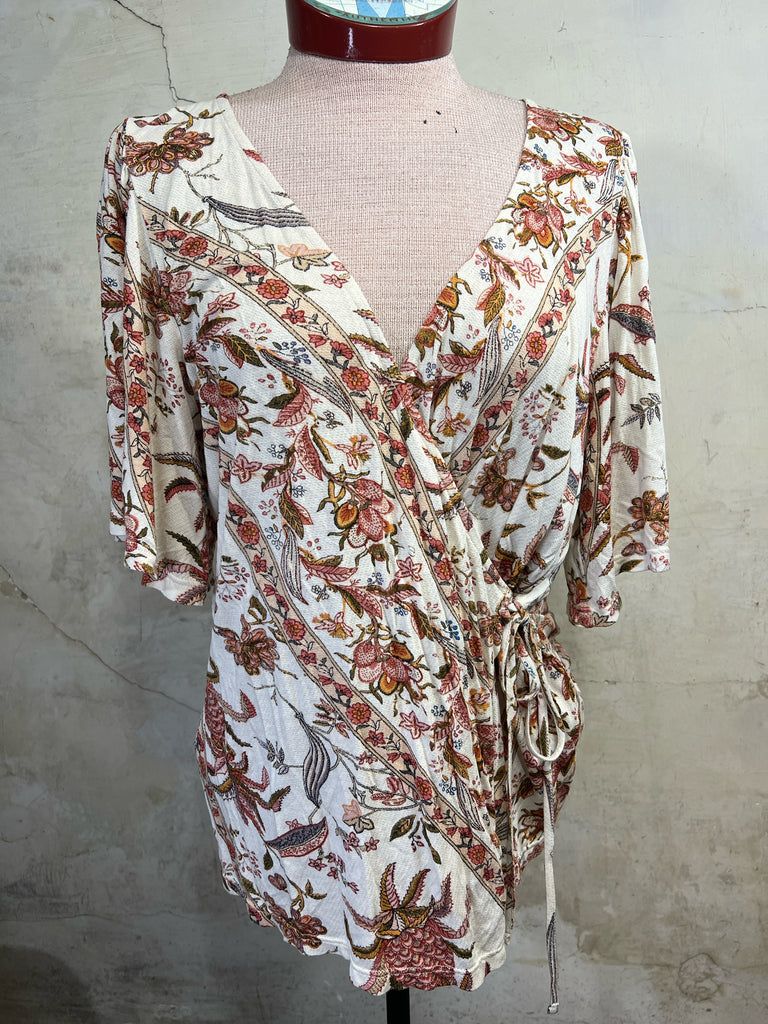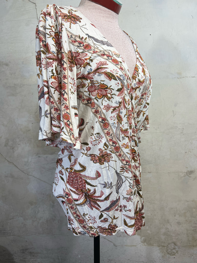 Size L LUCKY BRAND CREAM PRINT WRAP SHIRT Short Sleeve Shirt