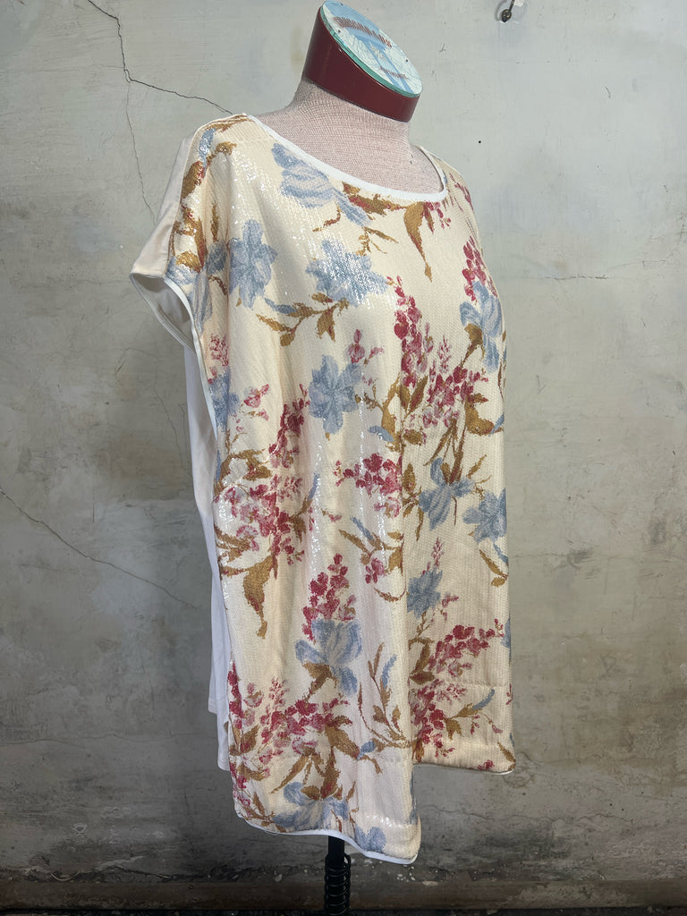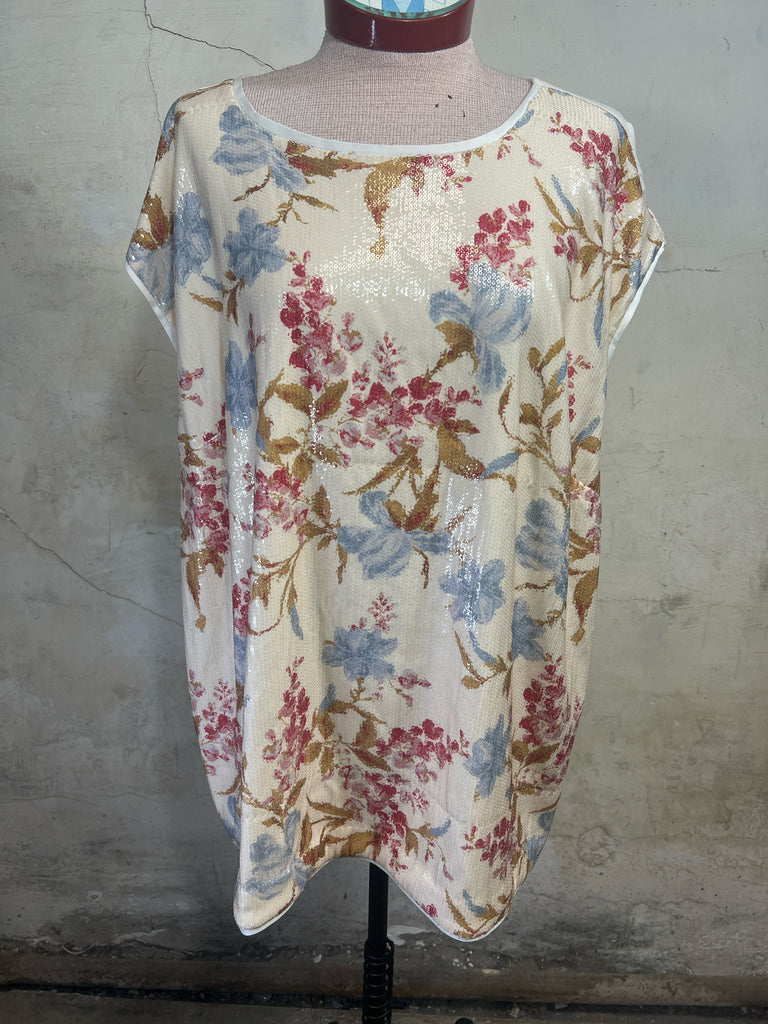 Size 1X VINCE CAMUTO CREAM SEQUIN PRINT Short Sleeve Shirt
