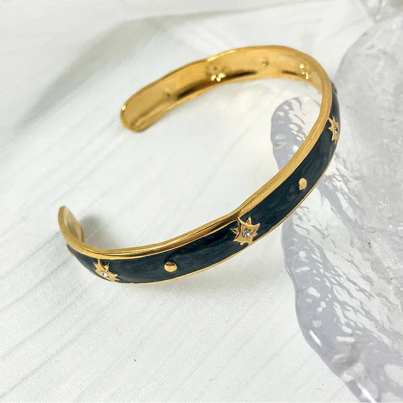 14K Gold Plated Black Star of Bethlehem Cuff Bracelet