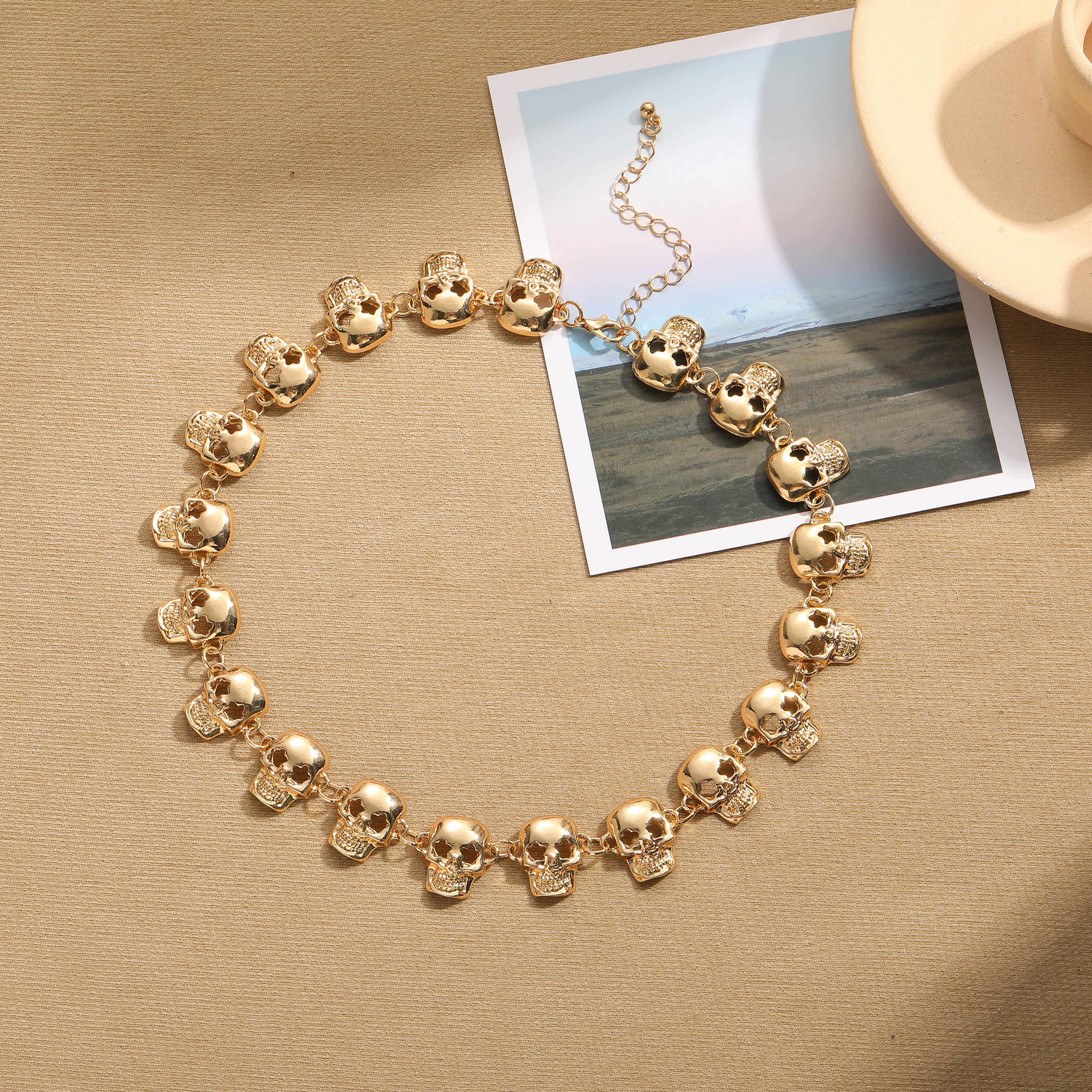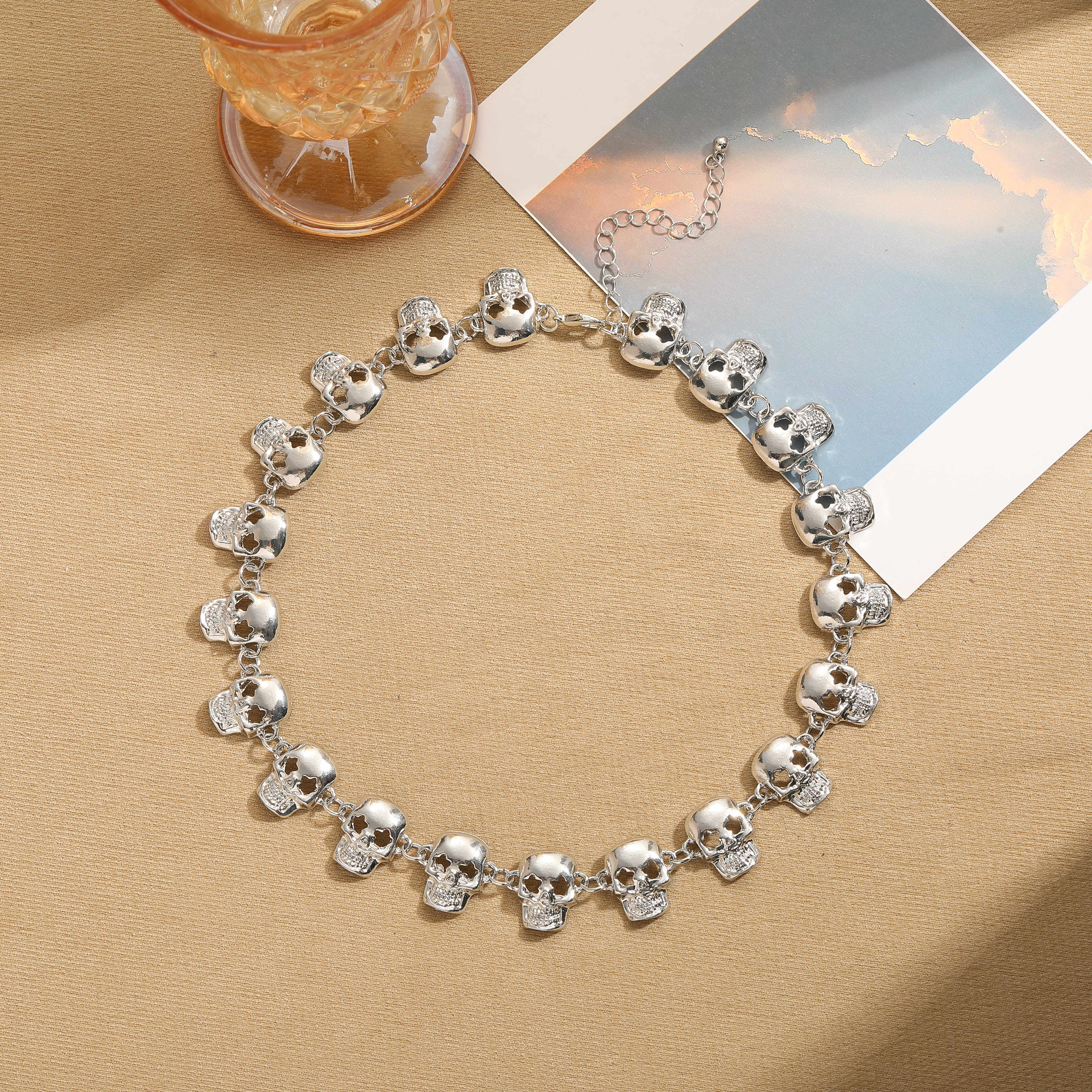 14K Gold/Silver Plated Skull Choker Necklace - Gold is backordered and will ship as soon as it is back in stock.