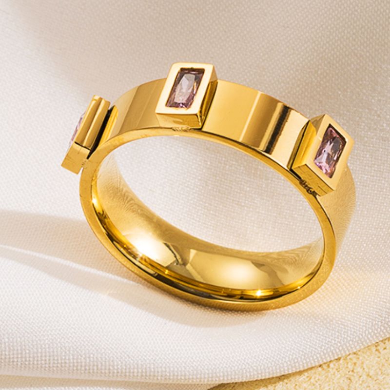 18K Gold Plated Block Style Ring | 2 Styles - Green / 7 is backordered and will ship as soon as it is back in stock.