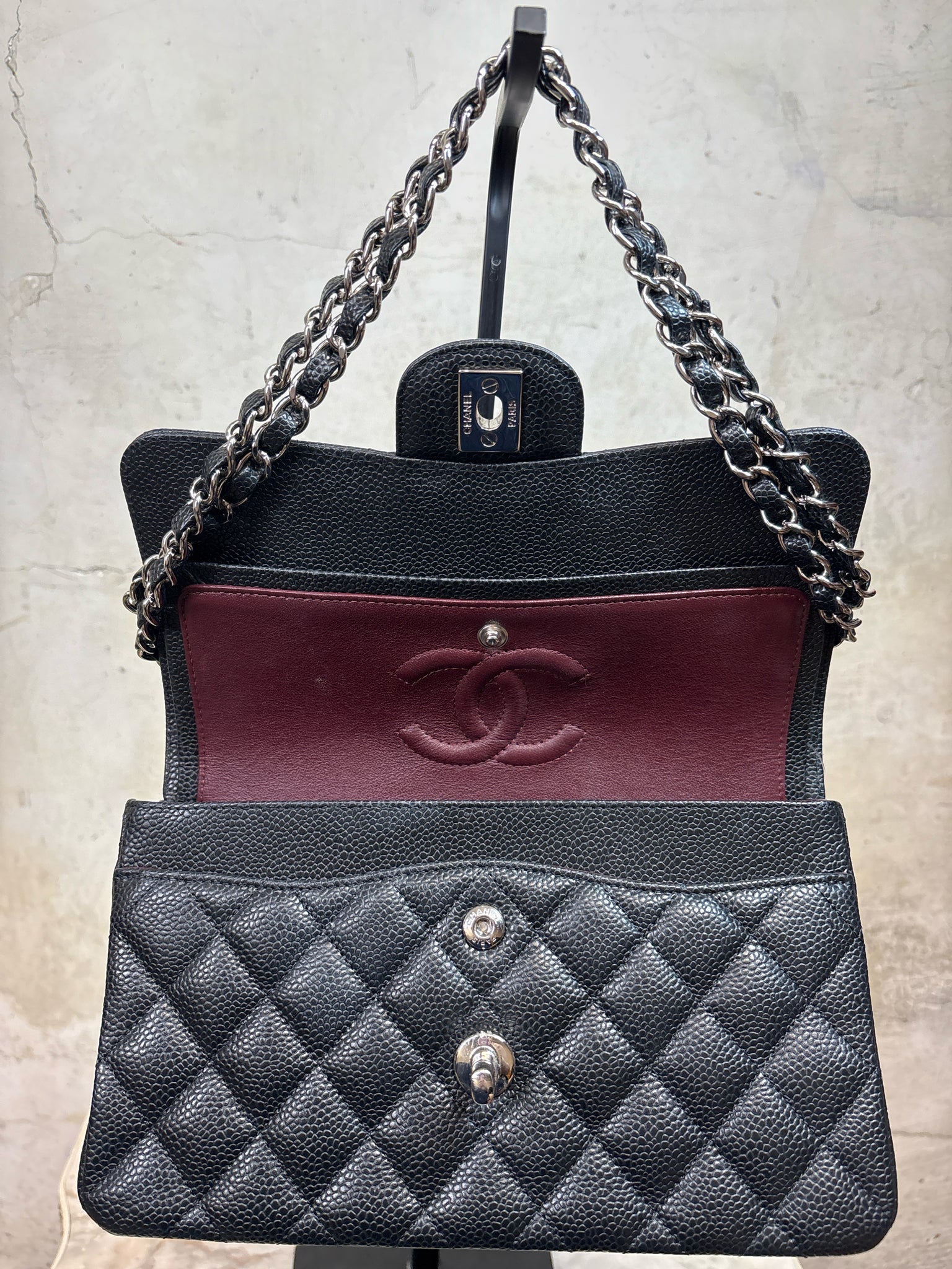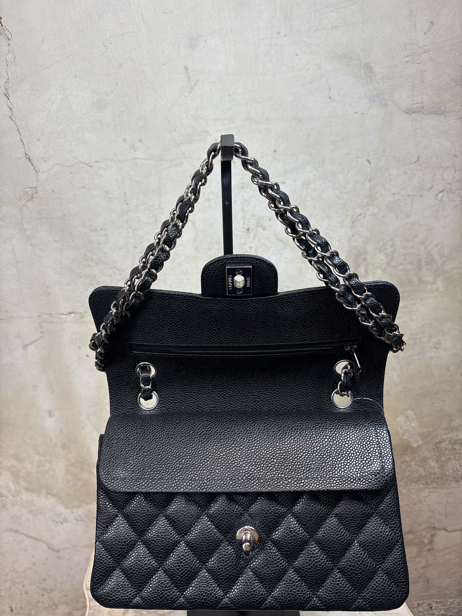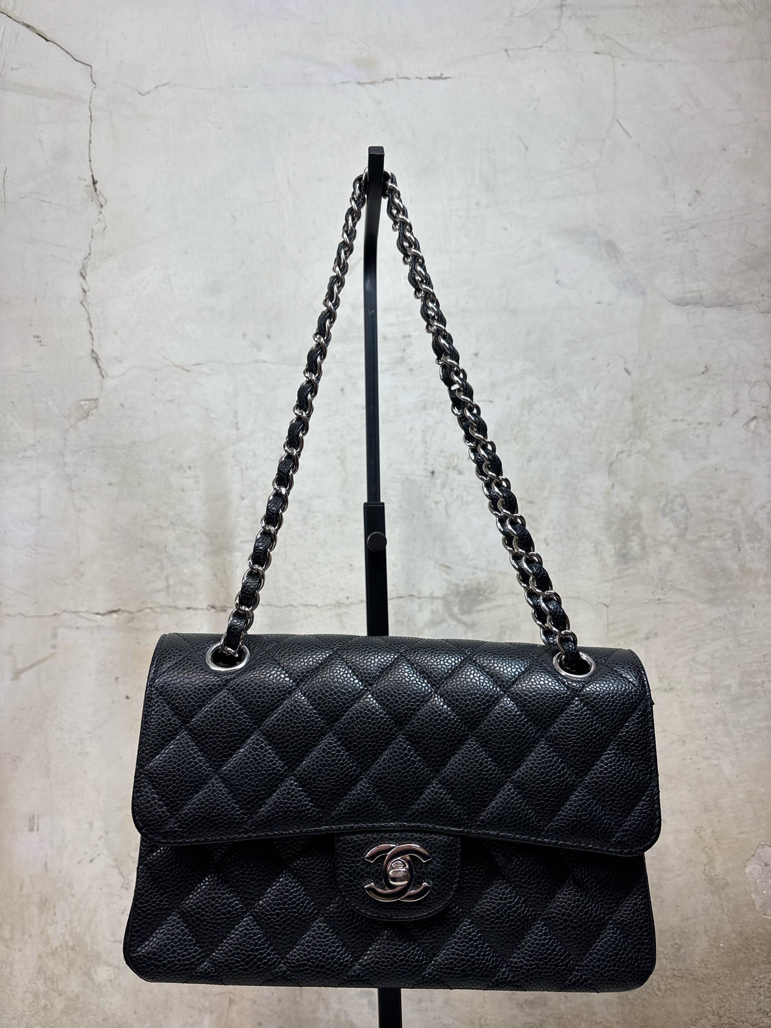 CHANEL Black Classic Double Flap 9.1 x 2.4 x 5.7" Caviar Leather Like New Purse - Black is backordered and will ship as soon as it is back in stock.