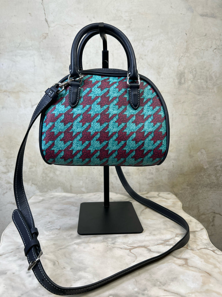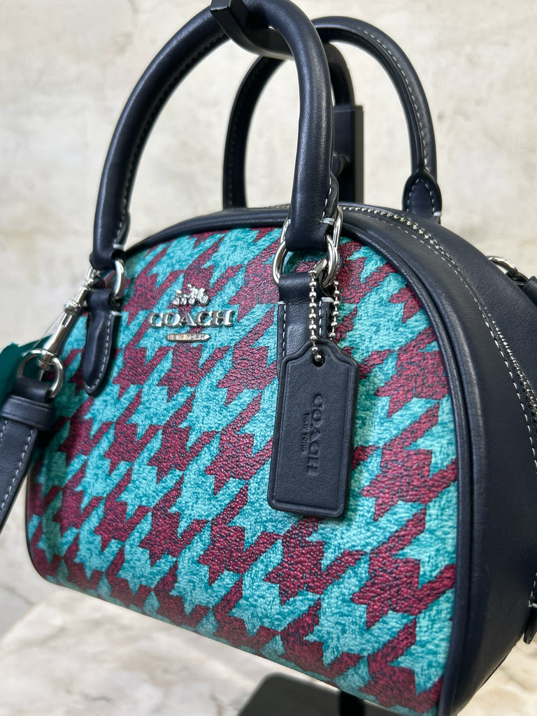 COACH BLUE/PINK Houndstooth Sydney Satchel Purse - BLUE/PINK is backordered and will ship as soon as it is back in stock.