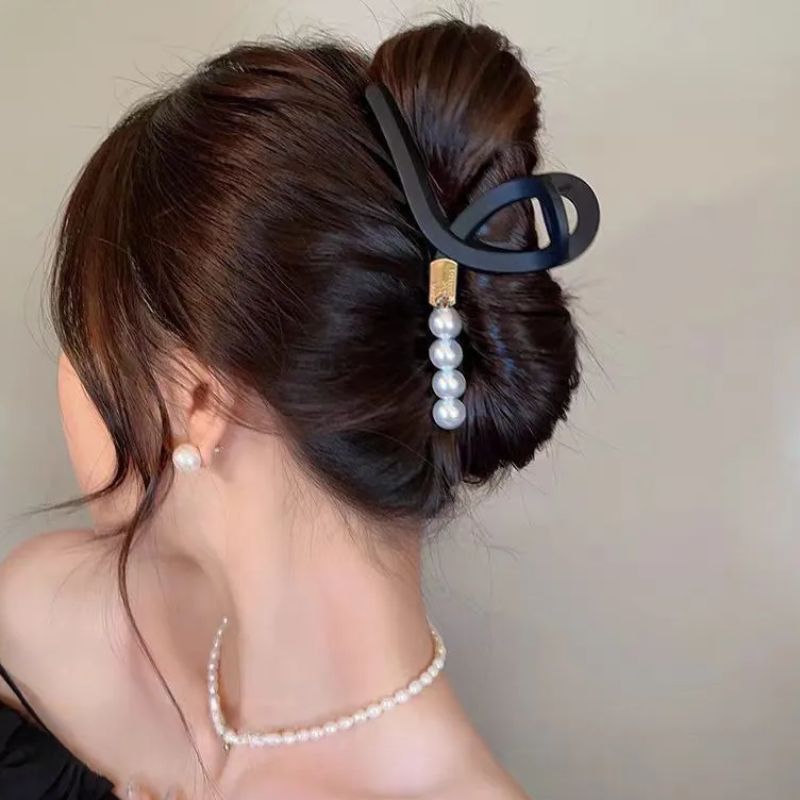 Coquette Black Oversized Black Clip with Pearls Hair - Black is backordered and will ship as soon as it is back in stock.