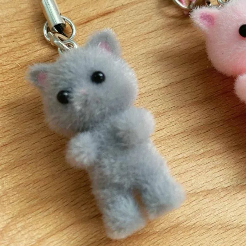 Fuzzy Cat Keychain | Pink or Gray