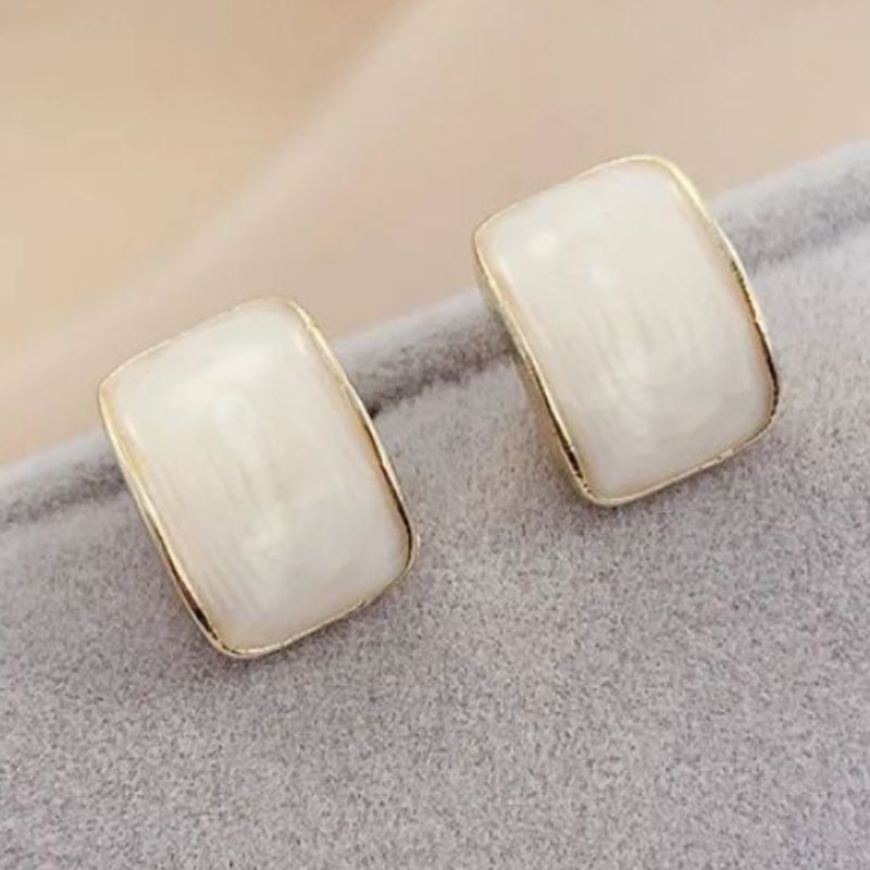 Gold Stud Earrings with White Inlay - Gold is backordered and will ship as soon as it is back in stock.