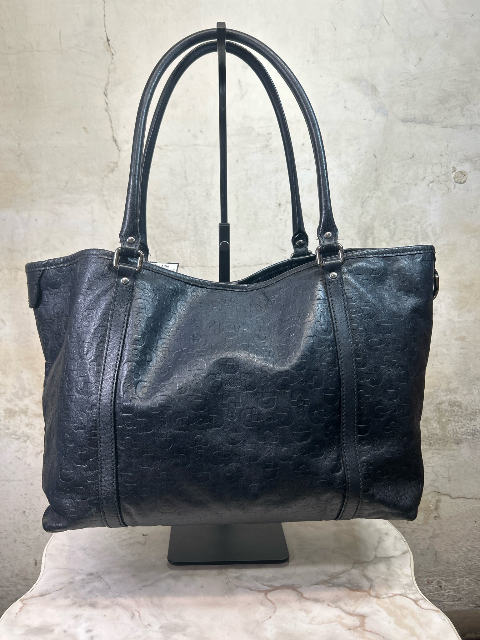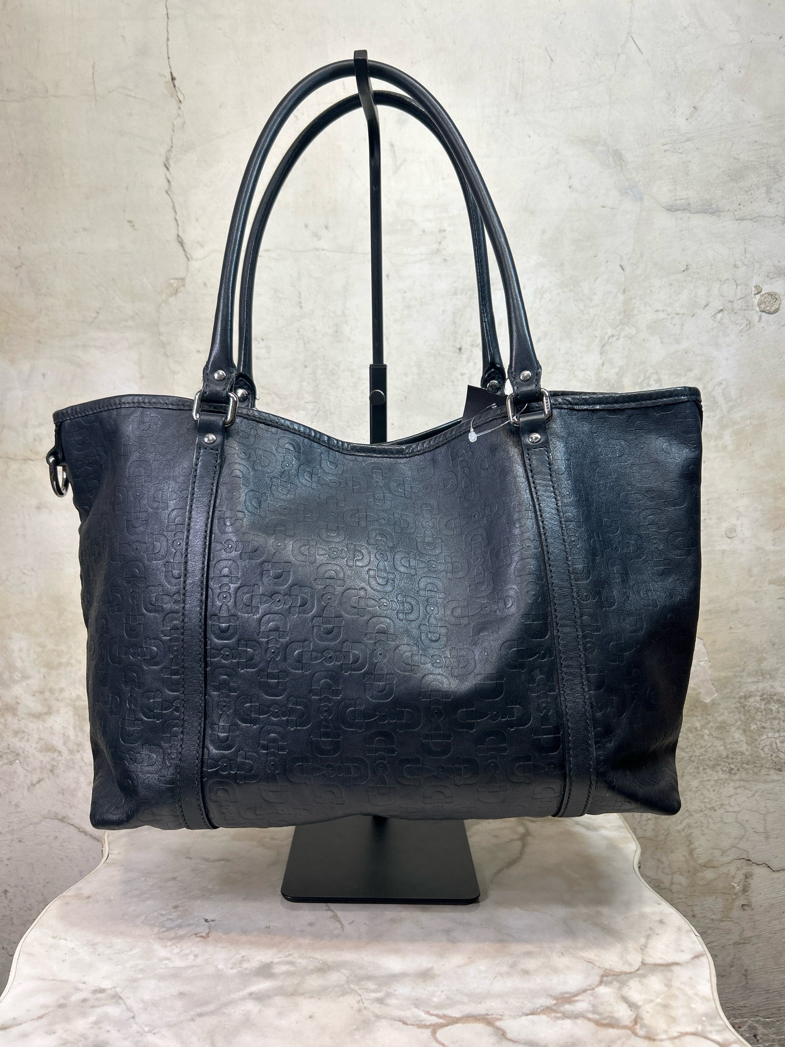 GUCCI Black Horsebit Pattern TOTE LEATHER Very minor scuff marks Purse