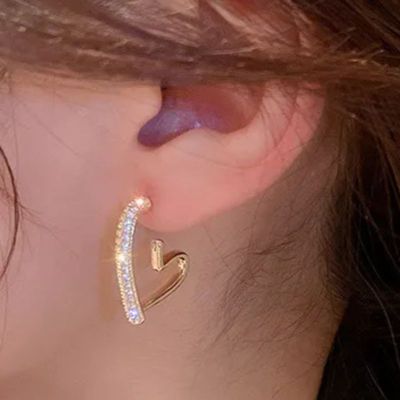Rhinestone Heart Drop Earrings - Gold is backordered and will ship as soon as it is back in stock.