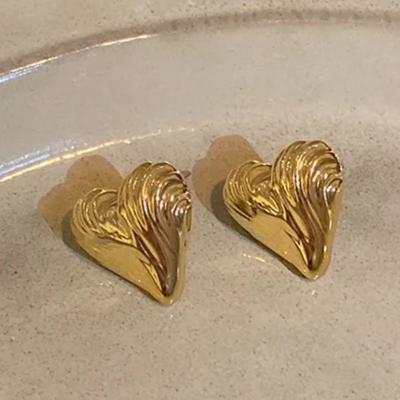 Gold Textured Heart Earrings