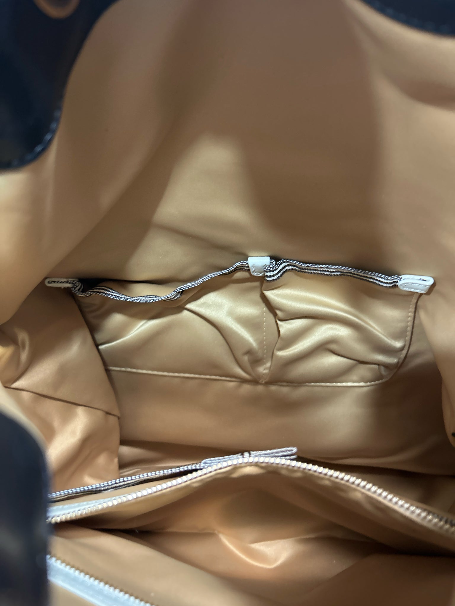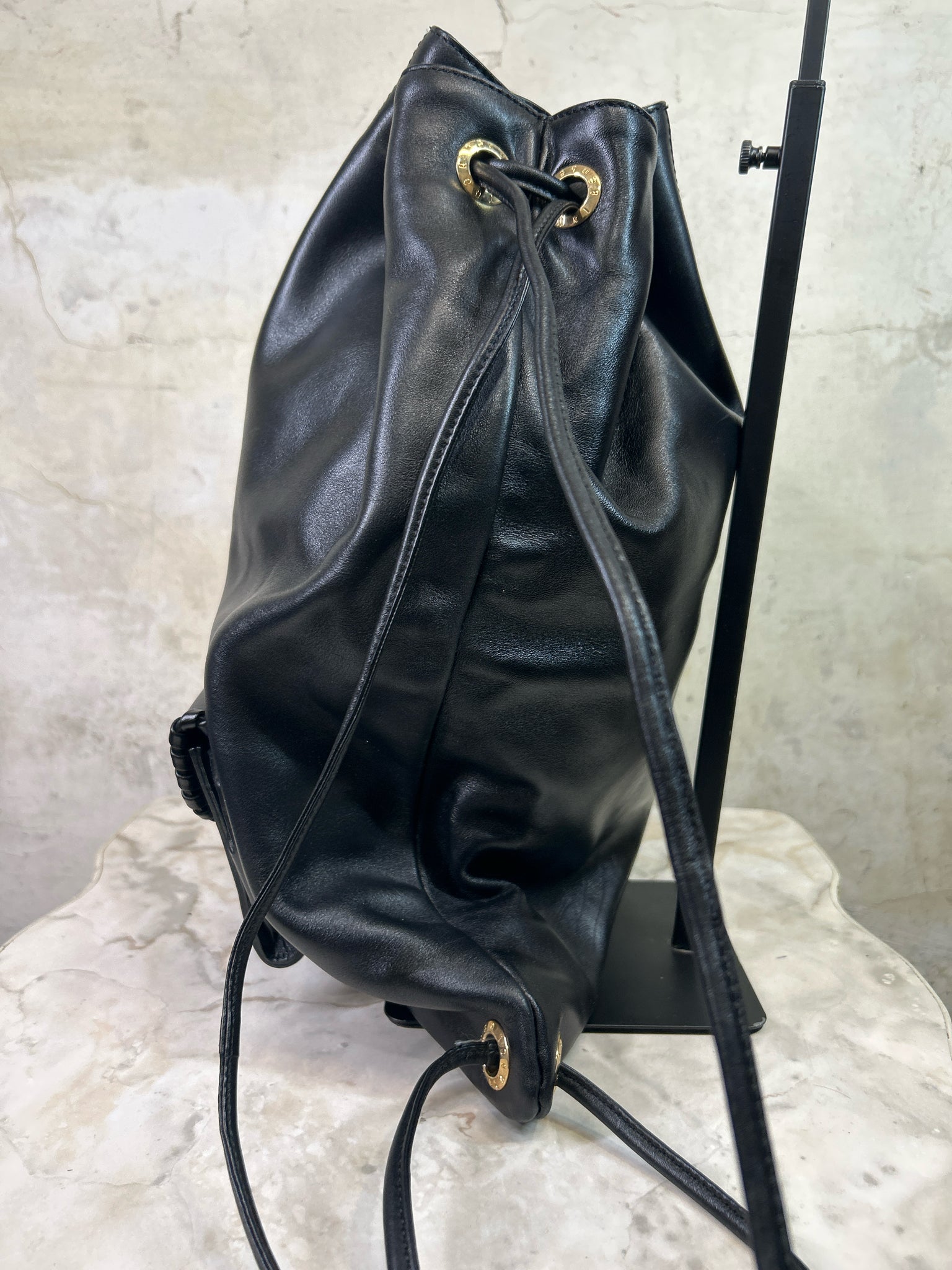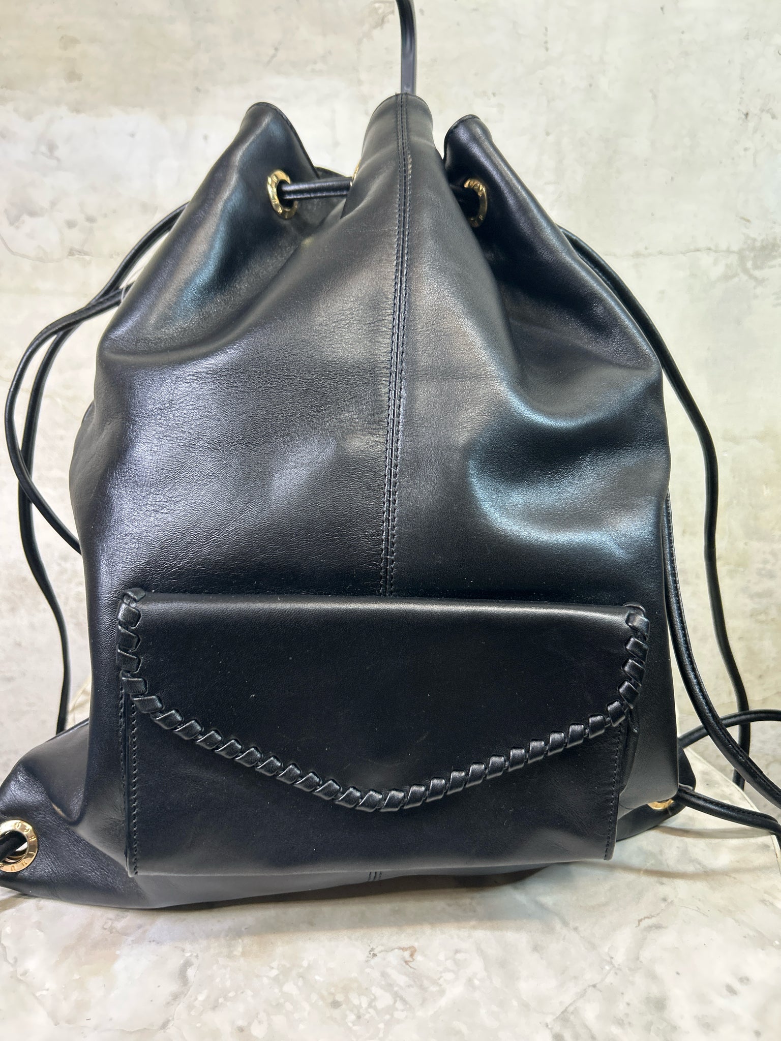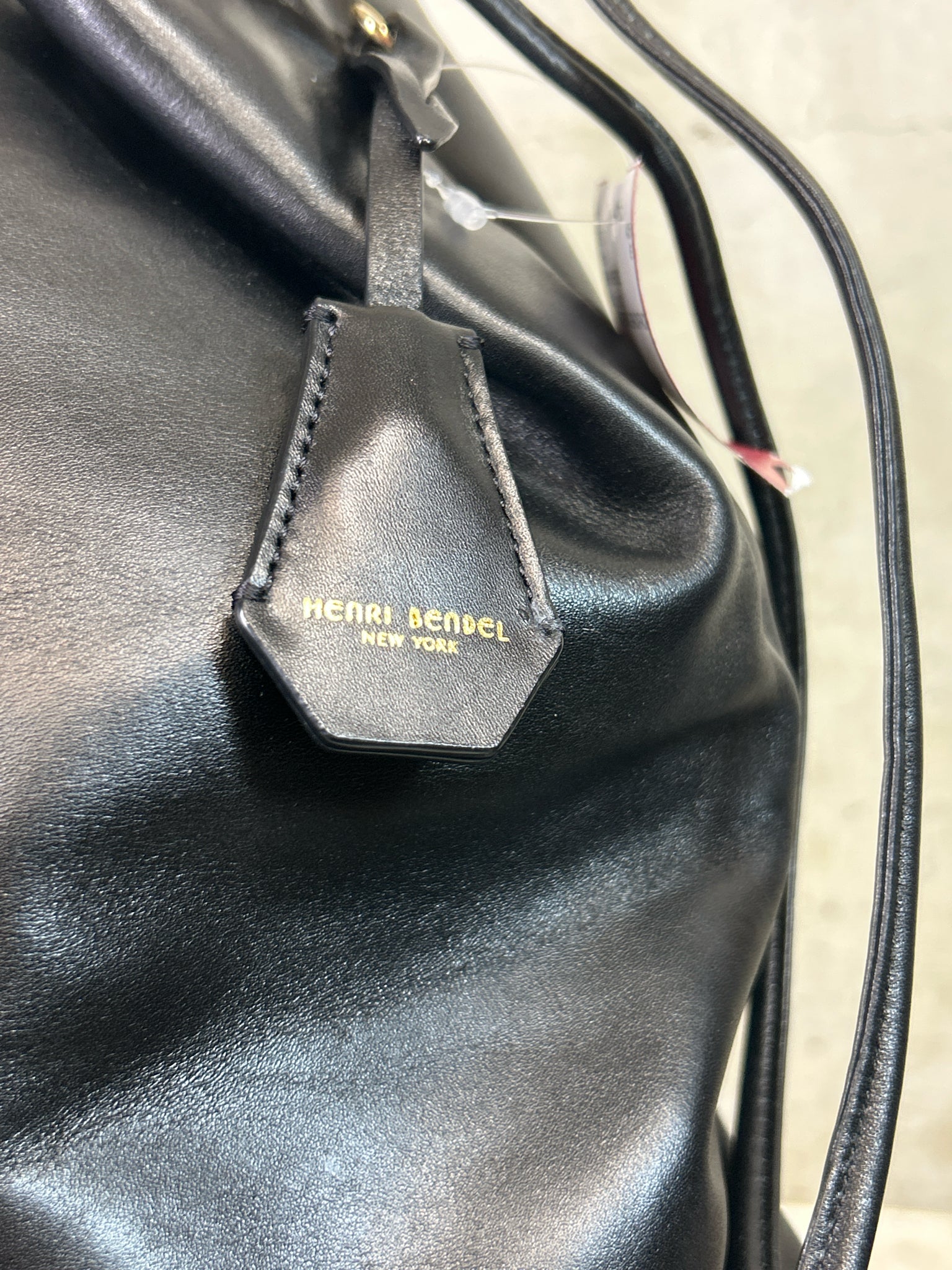 HENRI BENDEL Black Leather DRAWSTRING BACKPACK Purse - Black Leather is backordered and will ship as soon as it is back in stock.