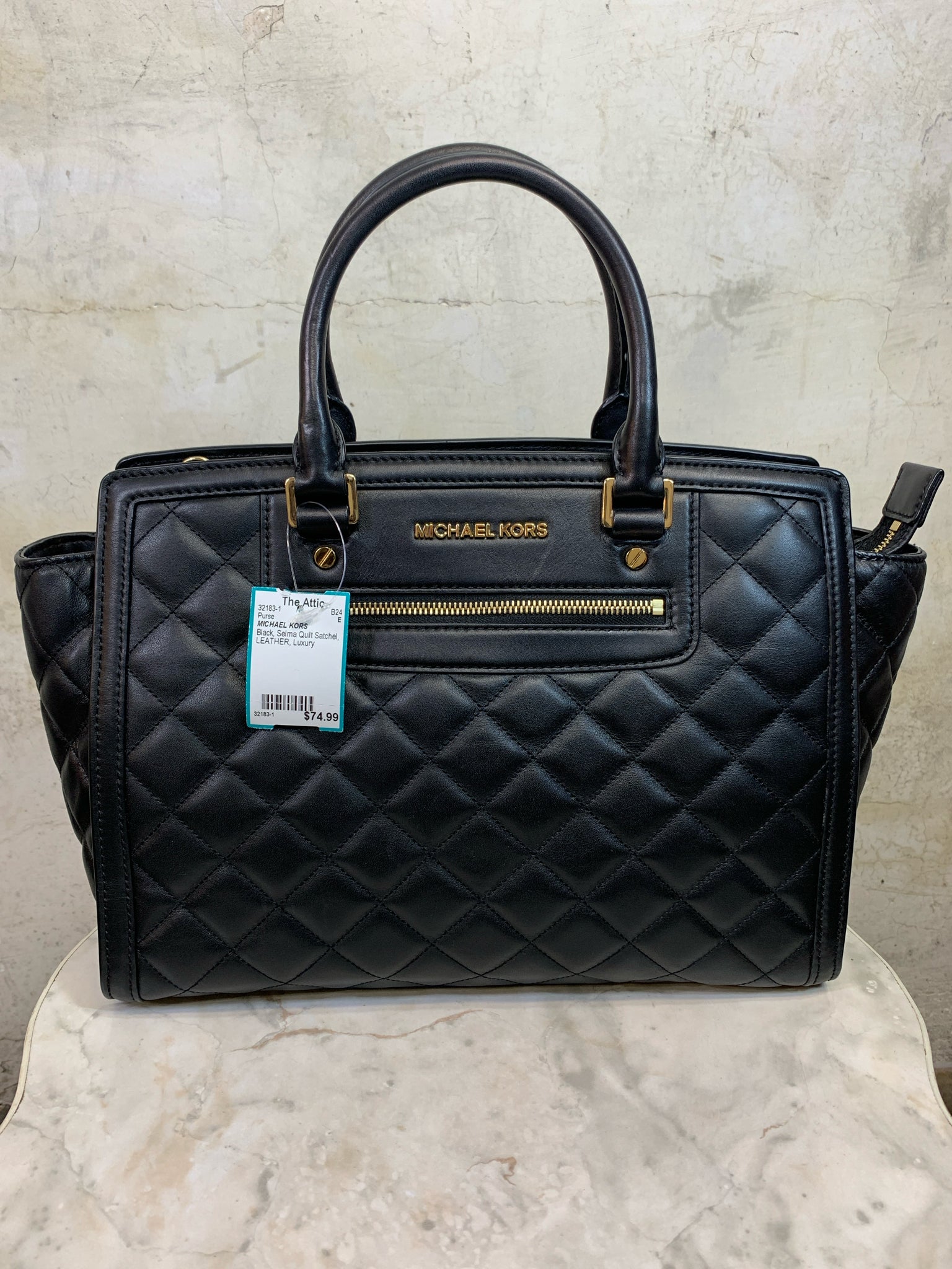 MICHAEL KORS Black Selma Quilt Satchel LEATHER Purse - Black is backordered and will ship as soon as it is back in stock.