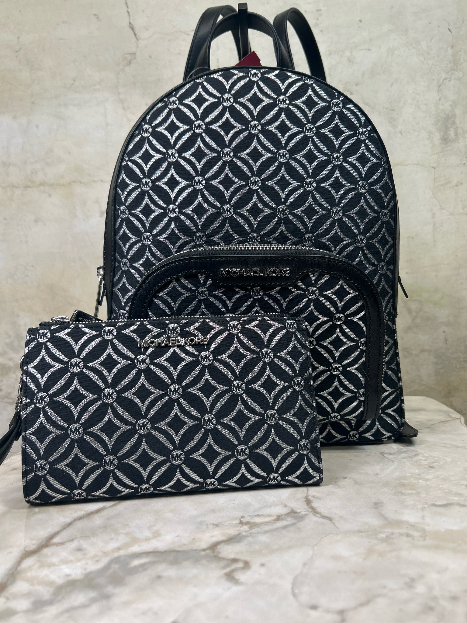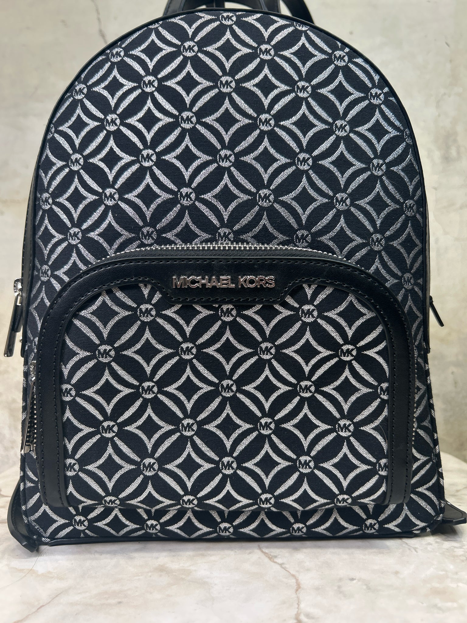 MICHAEL KORS BLACK/SILVER JAYCEE SIGNAURE BACKPACK Backpack - BLACK/SILVER is backordered and will ship as soon as it is back in stock.