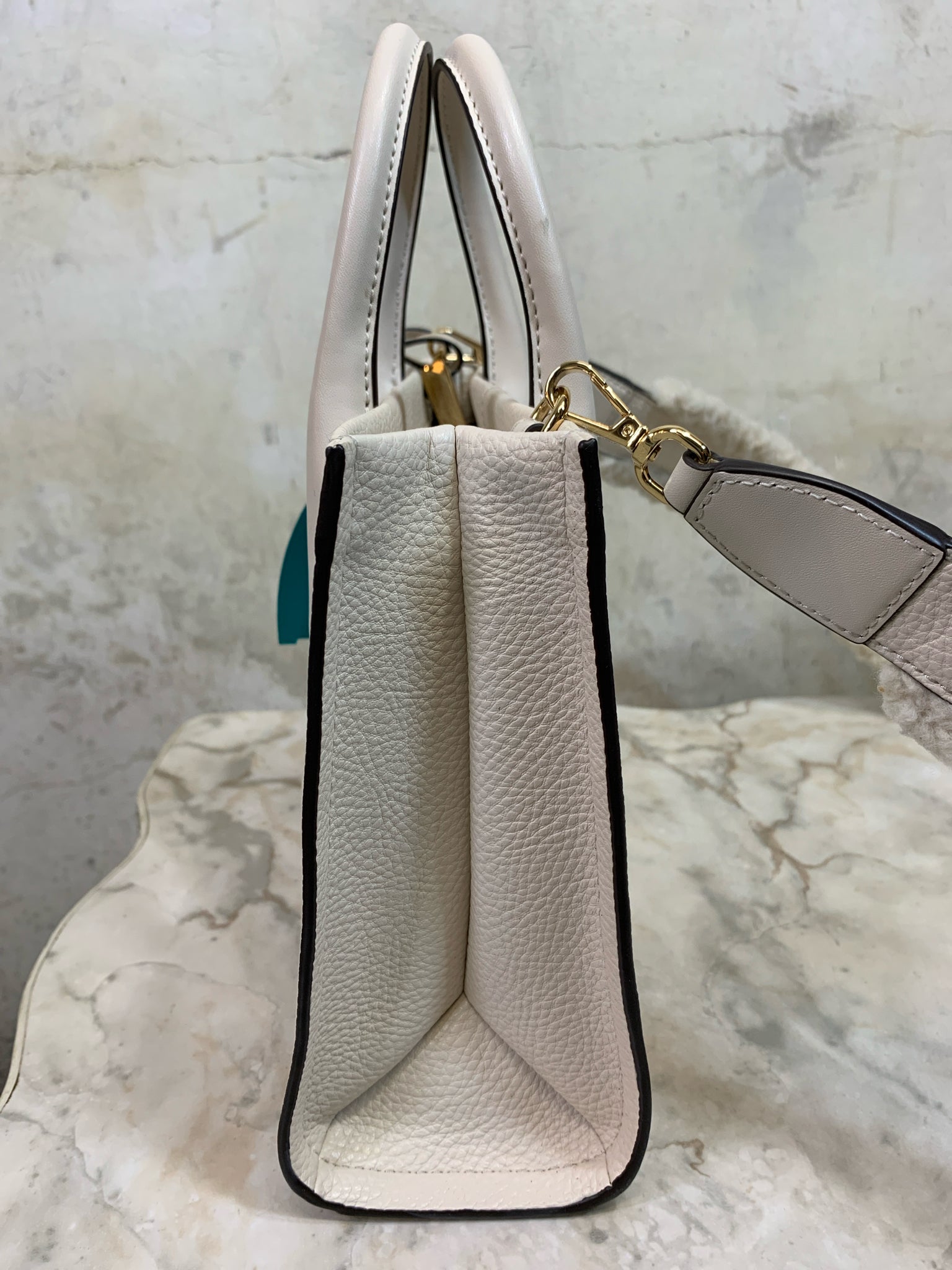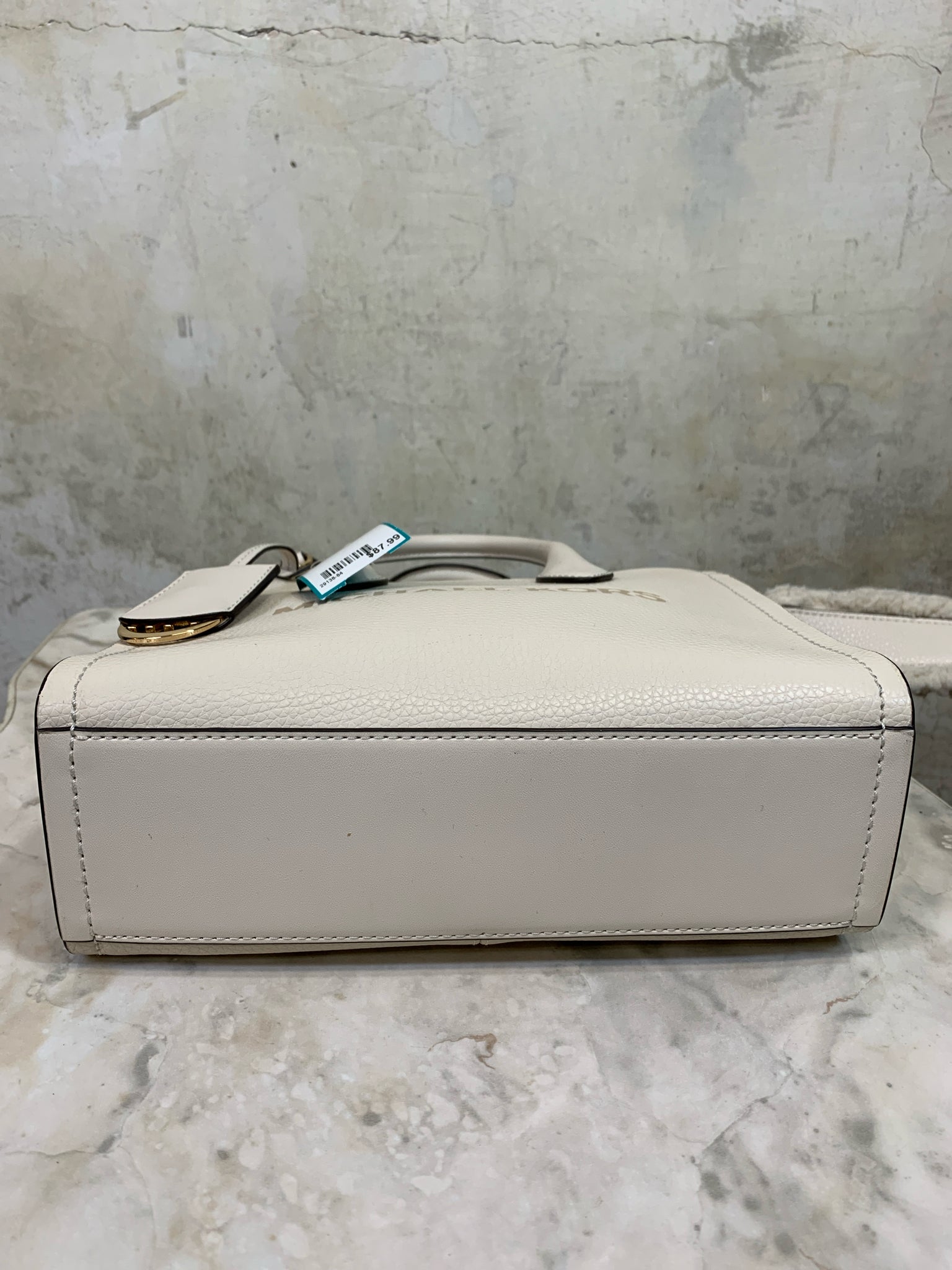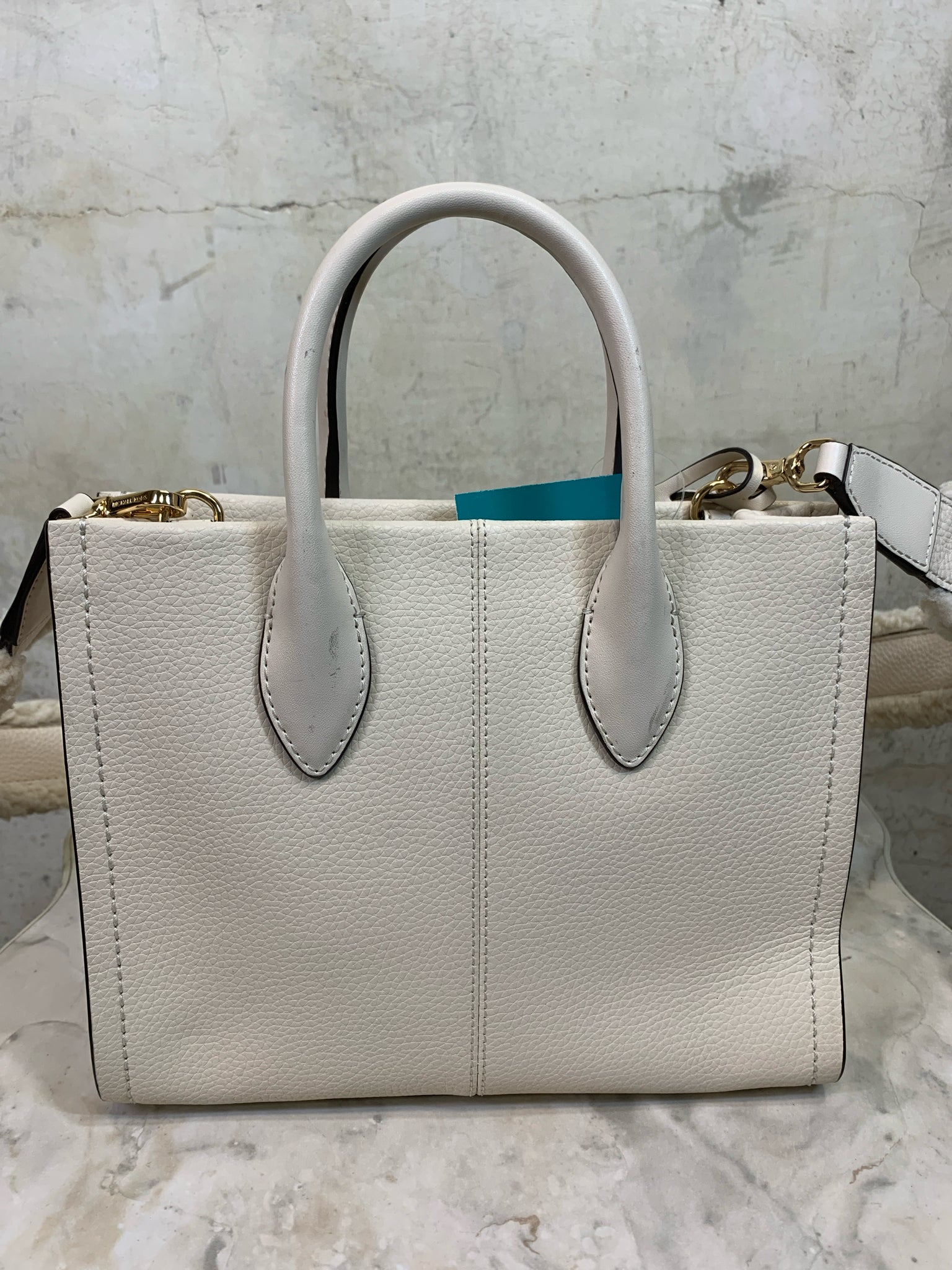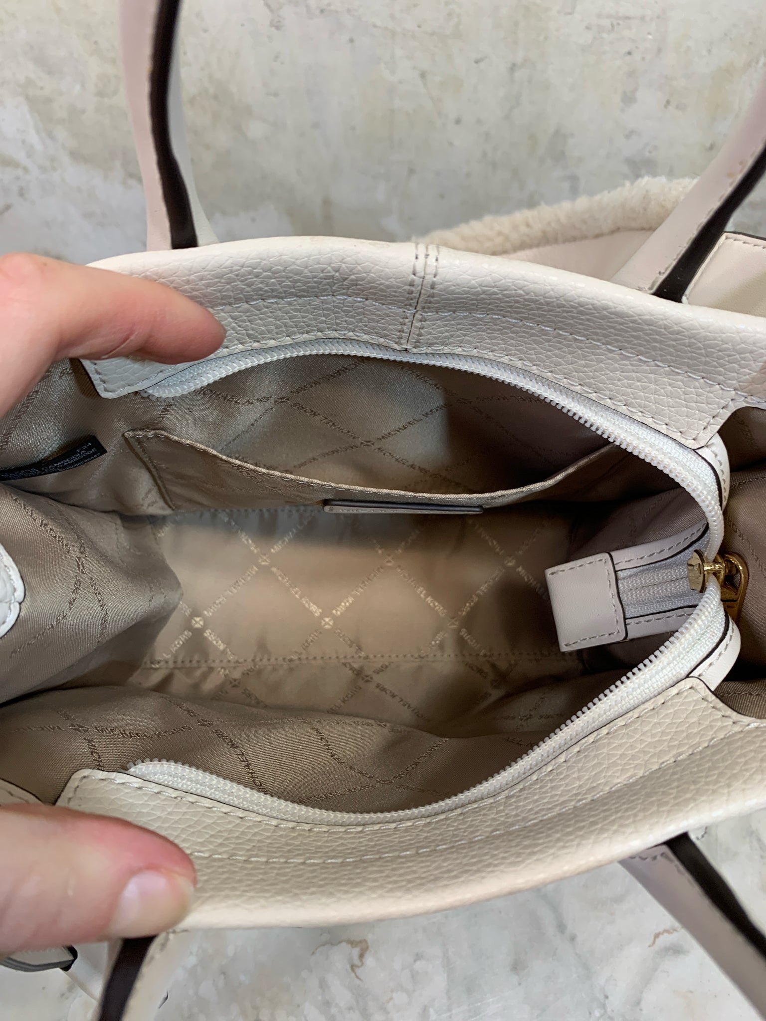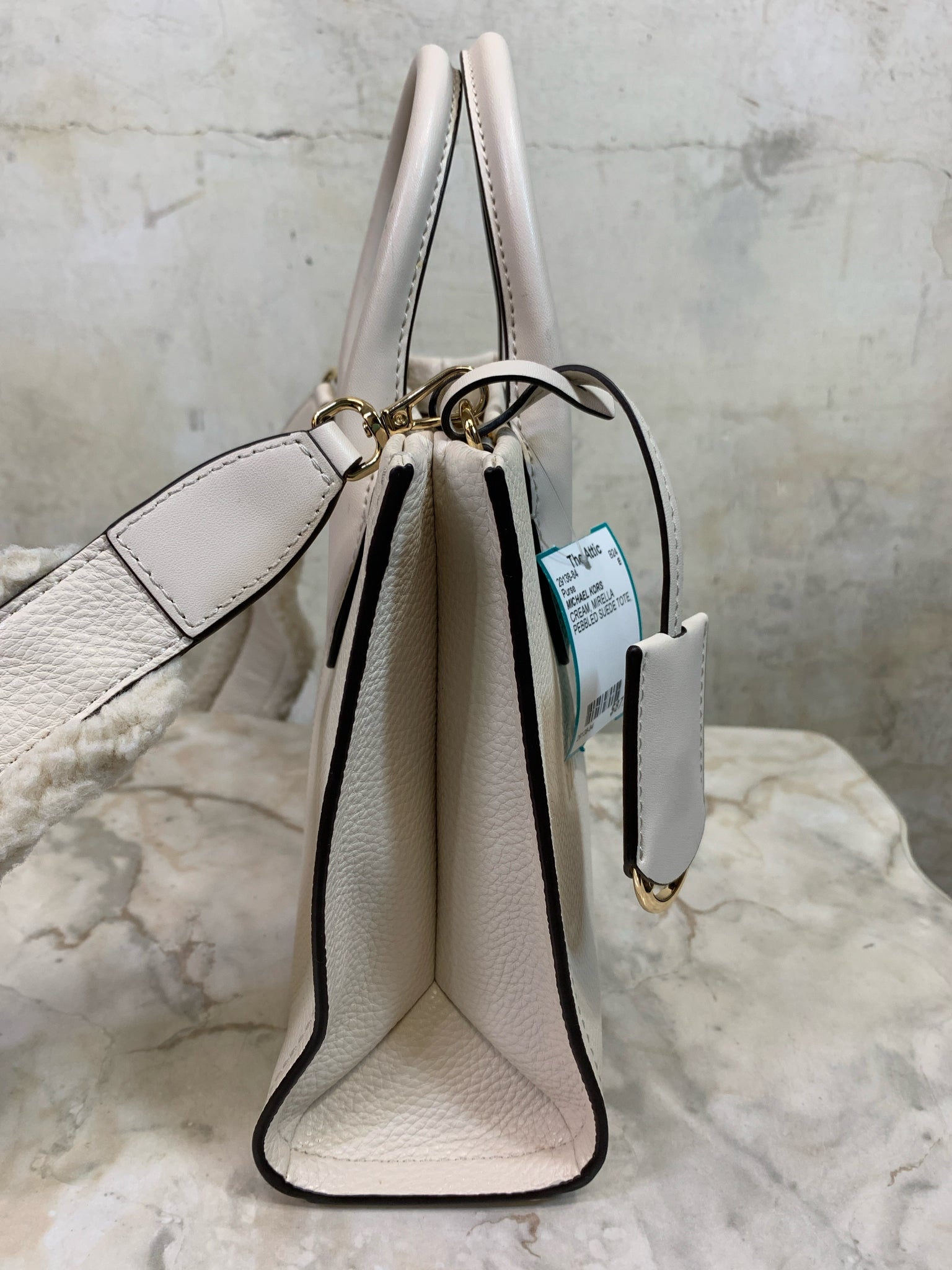 MICHAEL KORS CREAM MIRELLA PEBBLED SUEDE TOTE faux shearling strap Purse