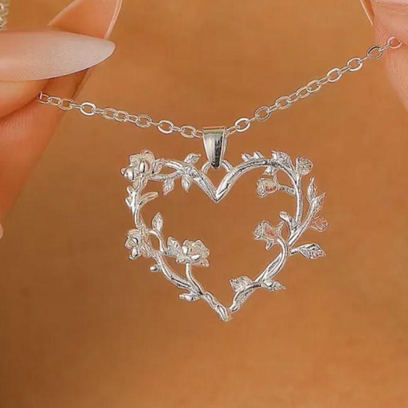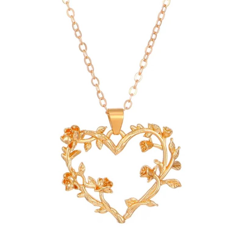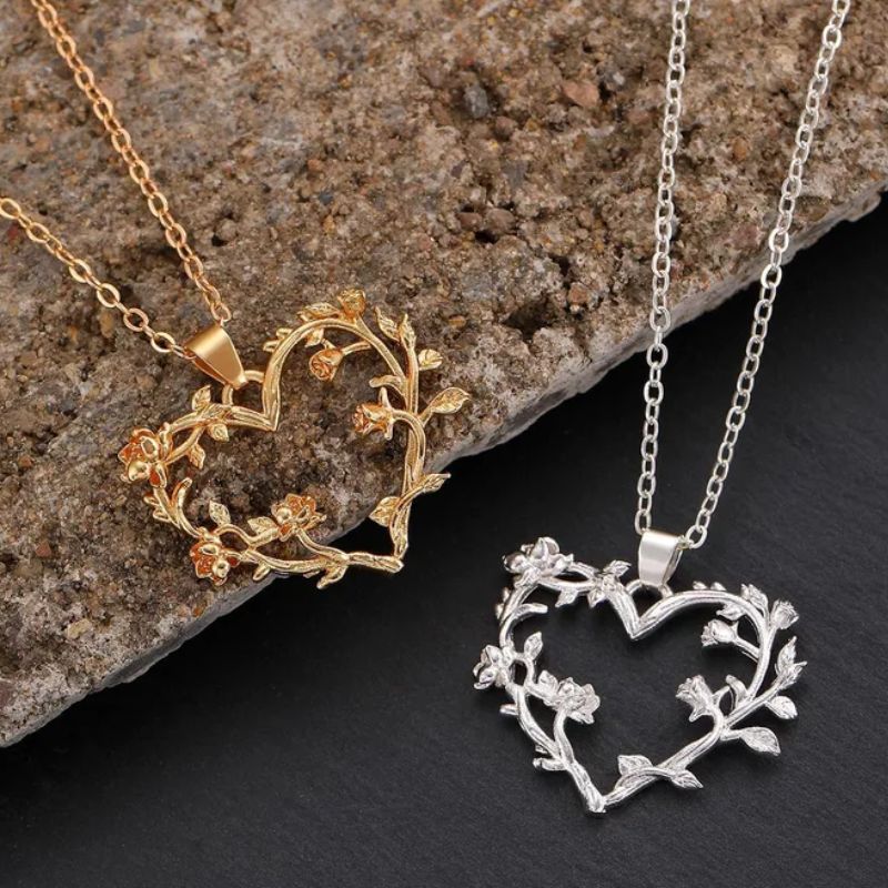 Rose Vine in a Heart Pattern Necklace | Gold or Silver - Gold is backordered and will ship as soon as it is back in stock.