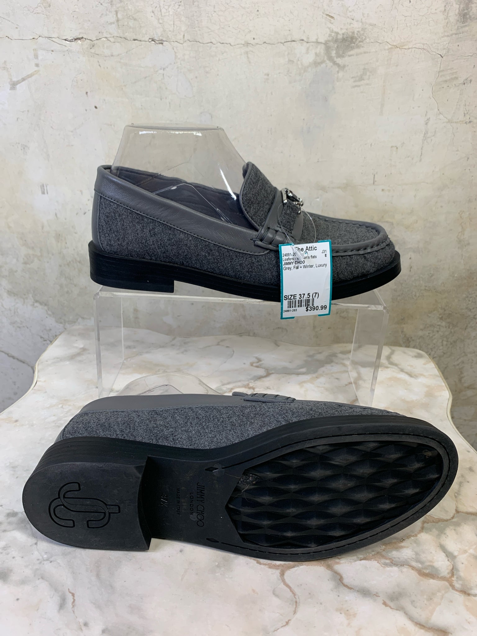 Shoe Size 37.5 (7) JIMMY CHOO Grey Loafers - women's flats