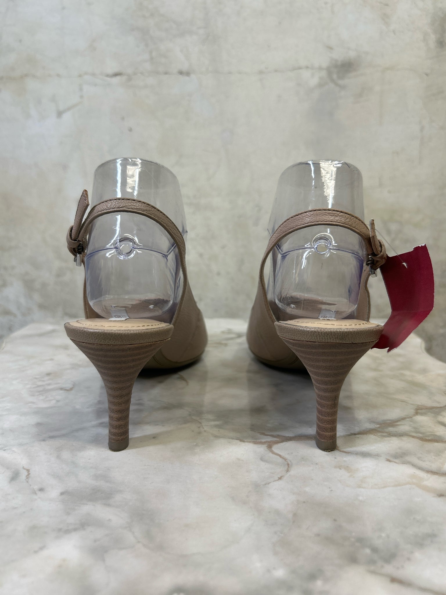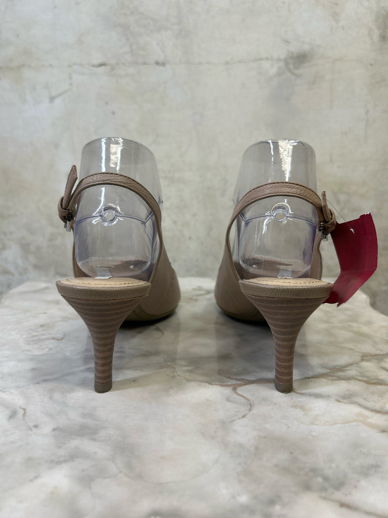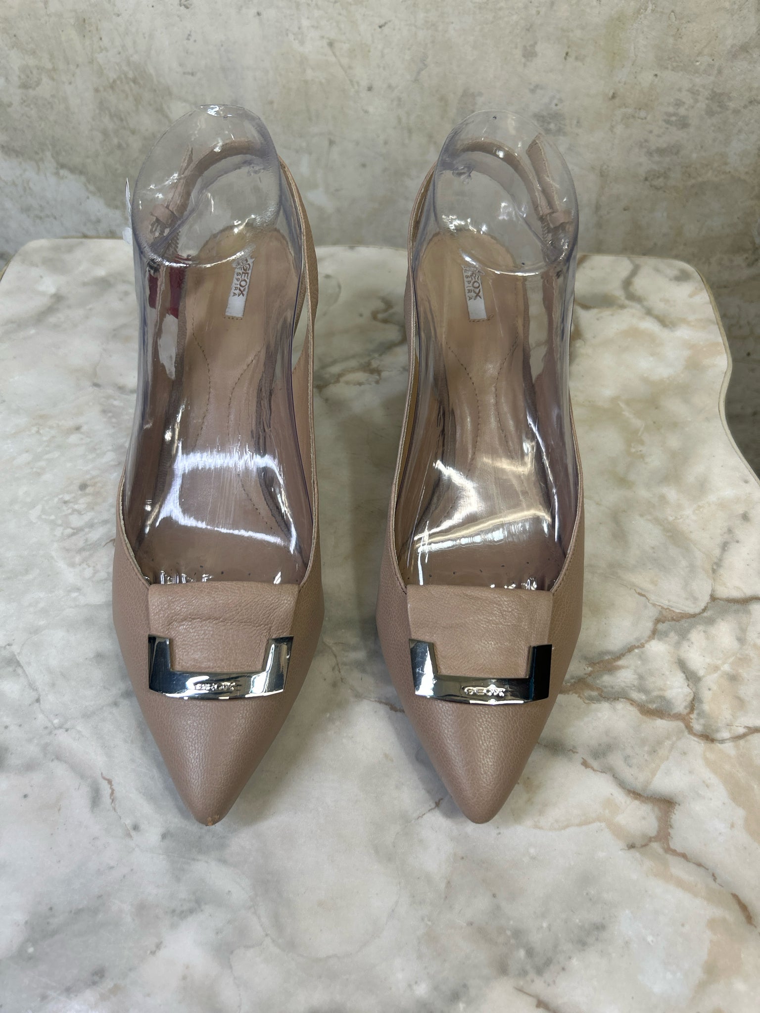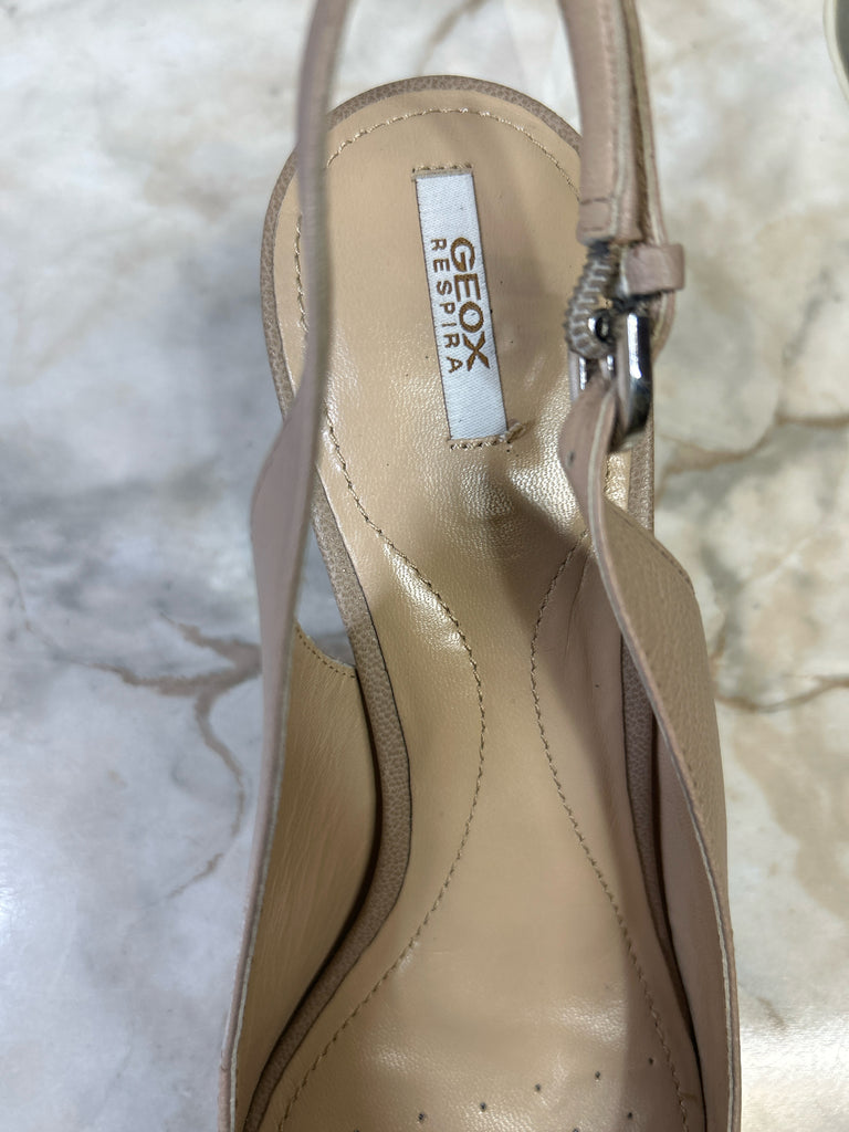 Shoe Size 38 (7.5/8) GEOX CREAM/SILVER Elina Slingback Heels + Wedges