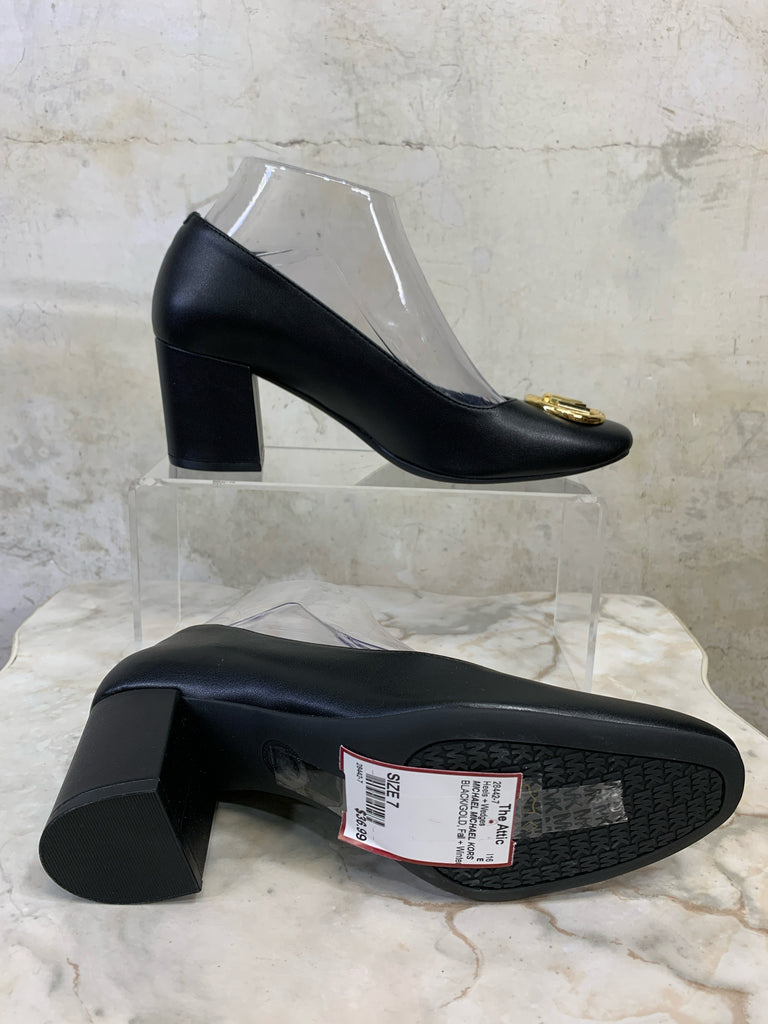 Shoe Size 7 MICHAEL MICHAEL KORS BLACK/GOLD Heels + Wedges - BLACK/GOLD / 7 is backordered and will ship as soon as it is back in stock.