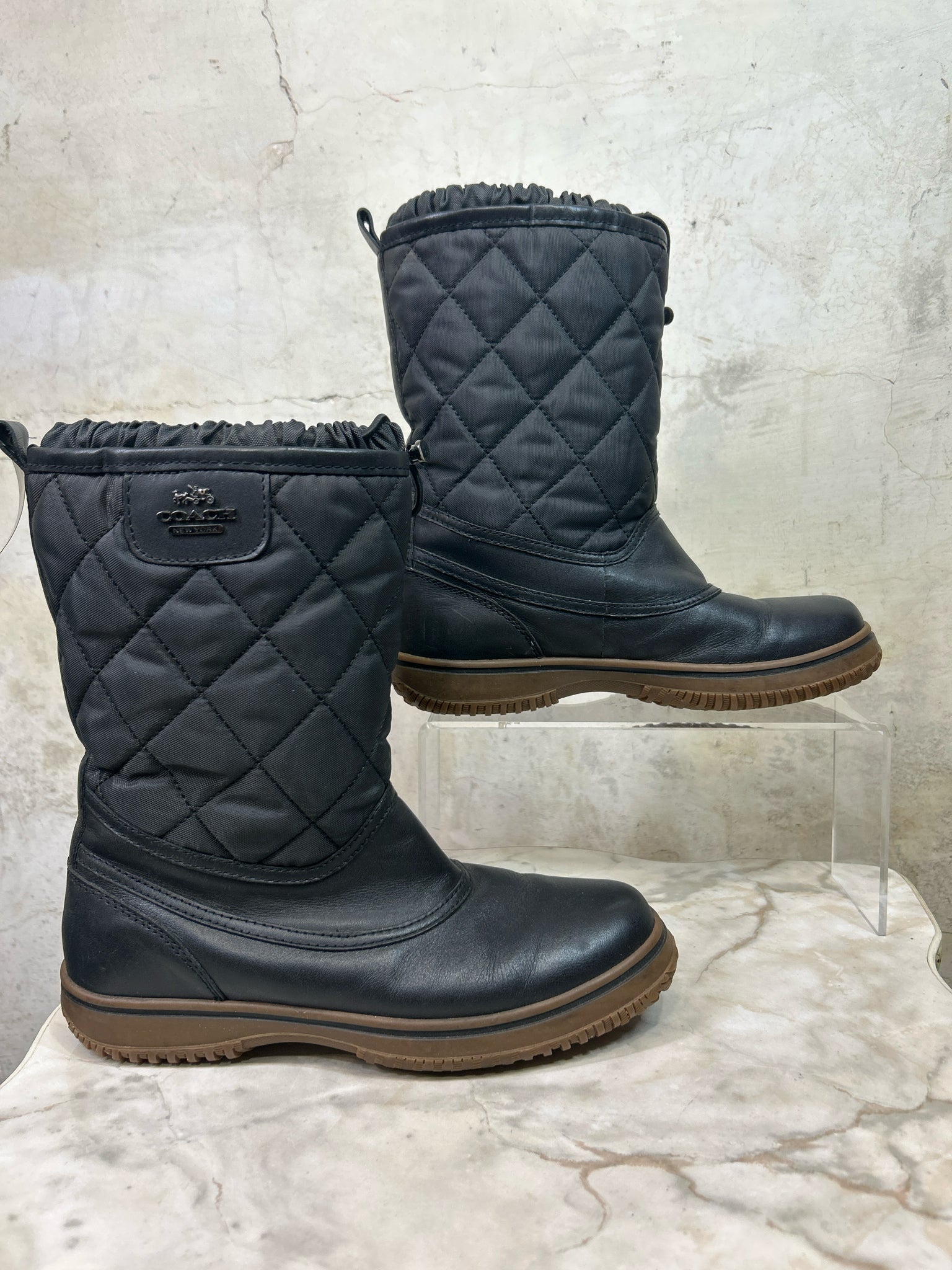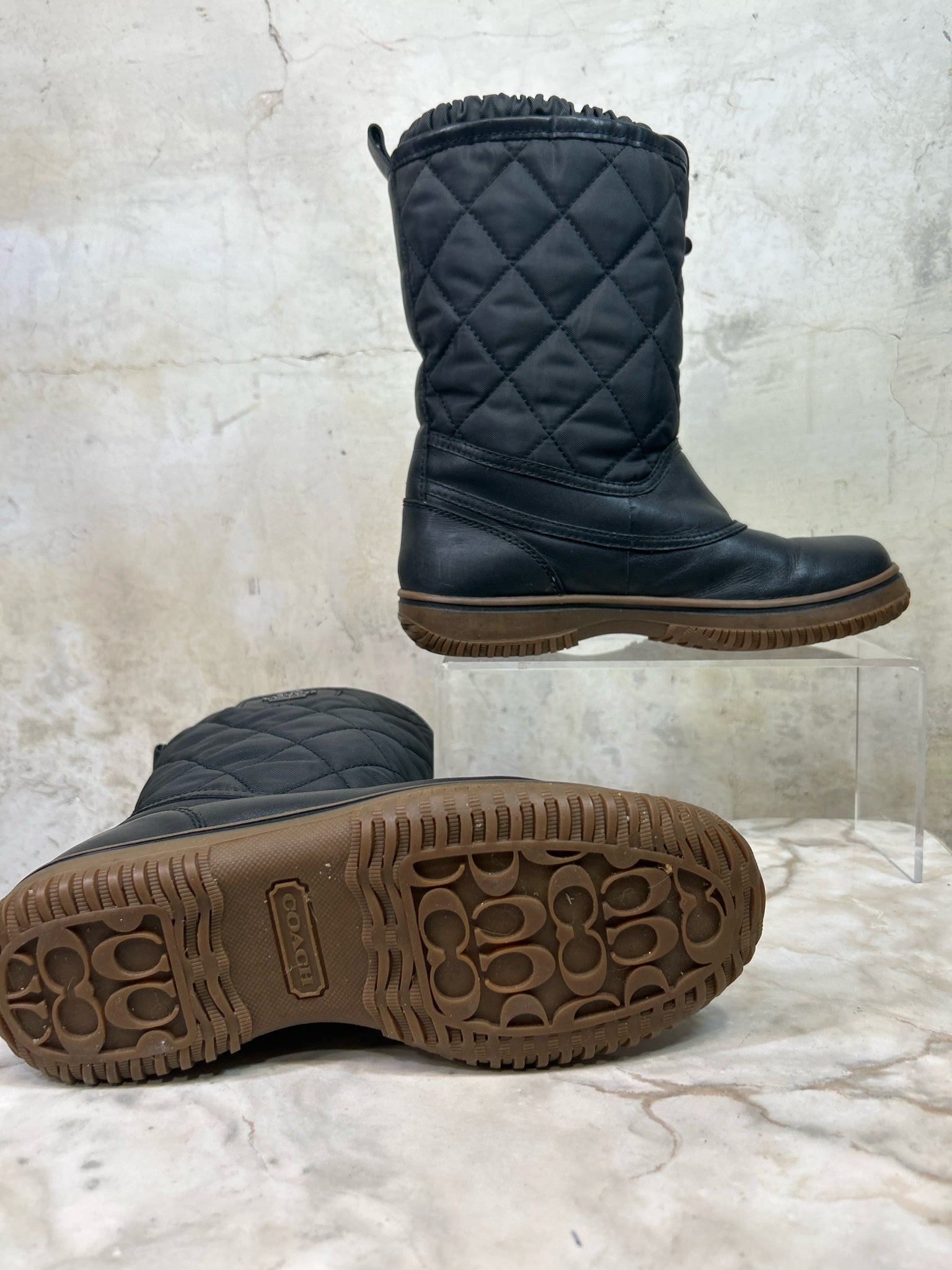 Shoe Size 6.5 COACH Black Samara Quilted Rainboot Boots - Ankle + Calf