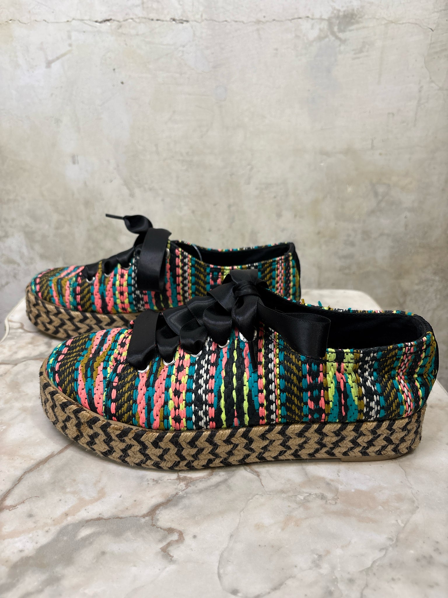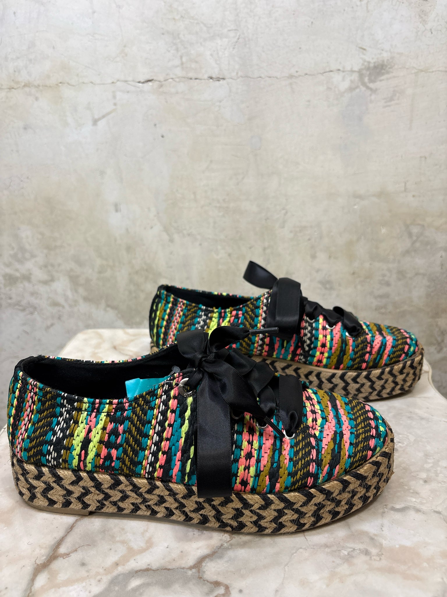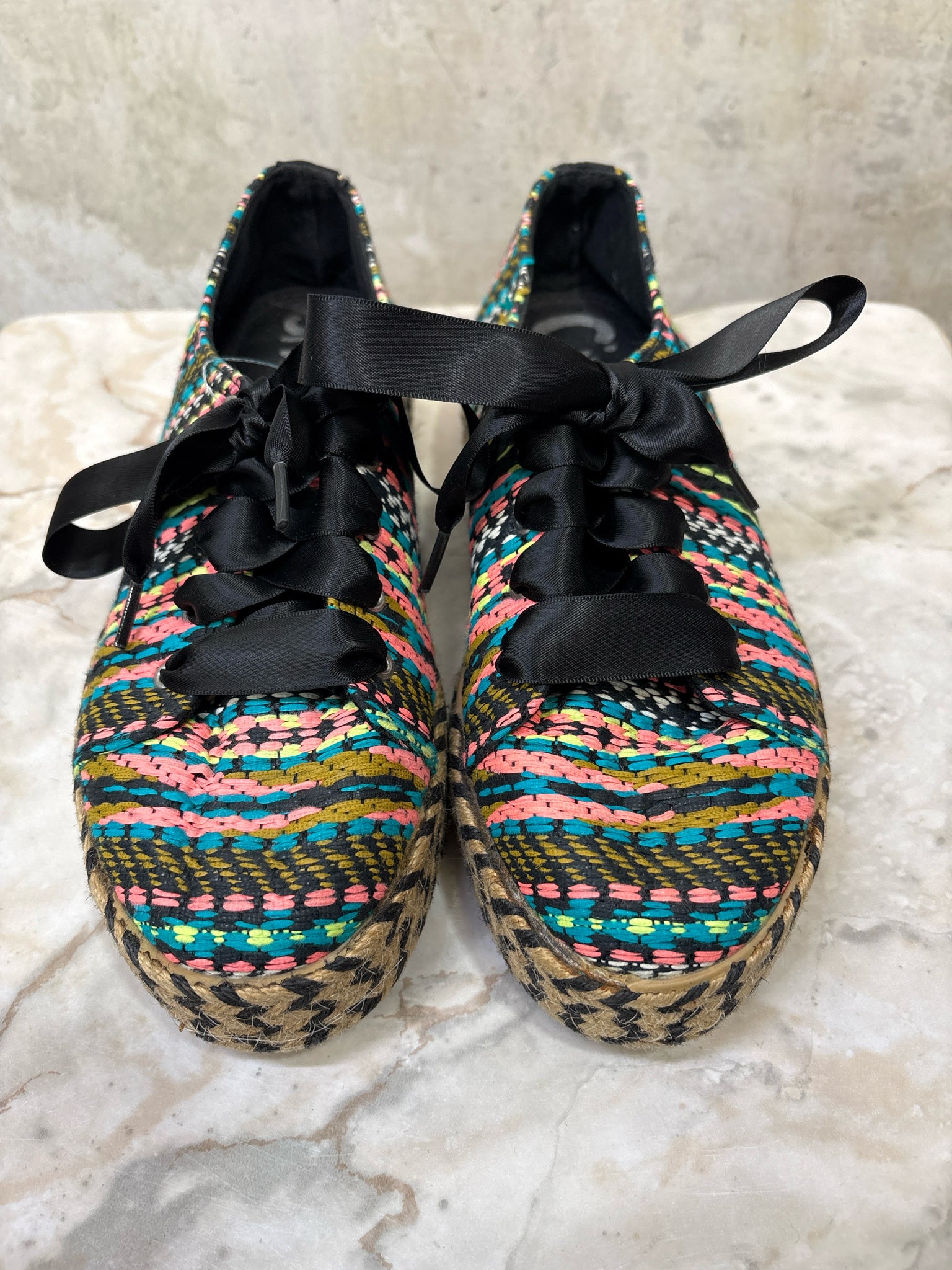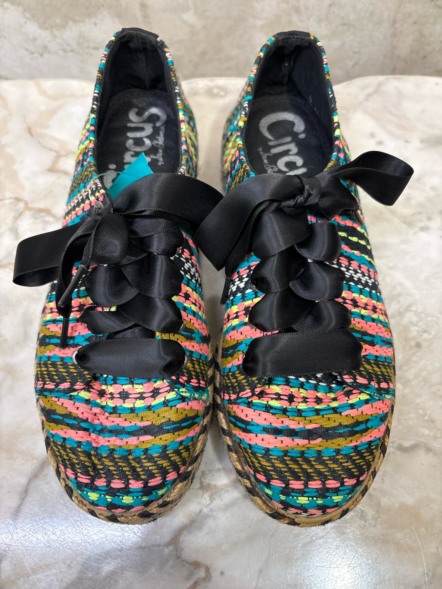 Shoe Size 8 CIRCUS by SAM EDELMAN BLACK/MULTI Brandon Raffia Espadrille Sneakers - BLACK/MULTI / 8 is backordered and will ship as soon as it is back in stock.