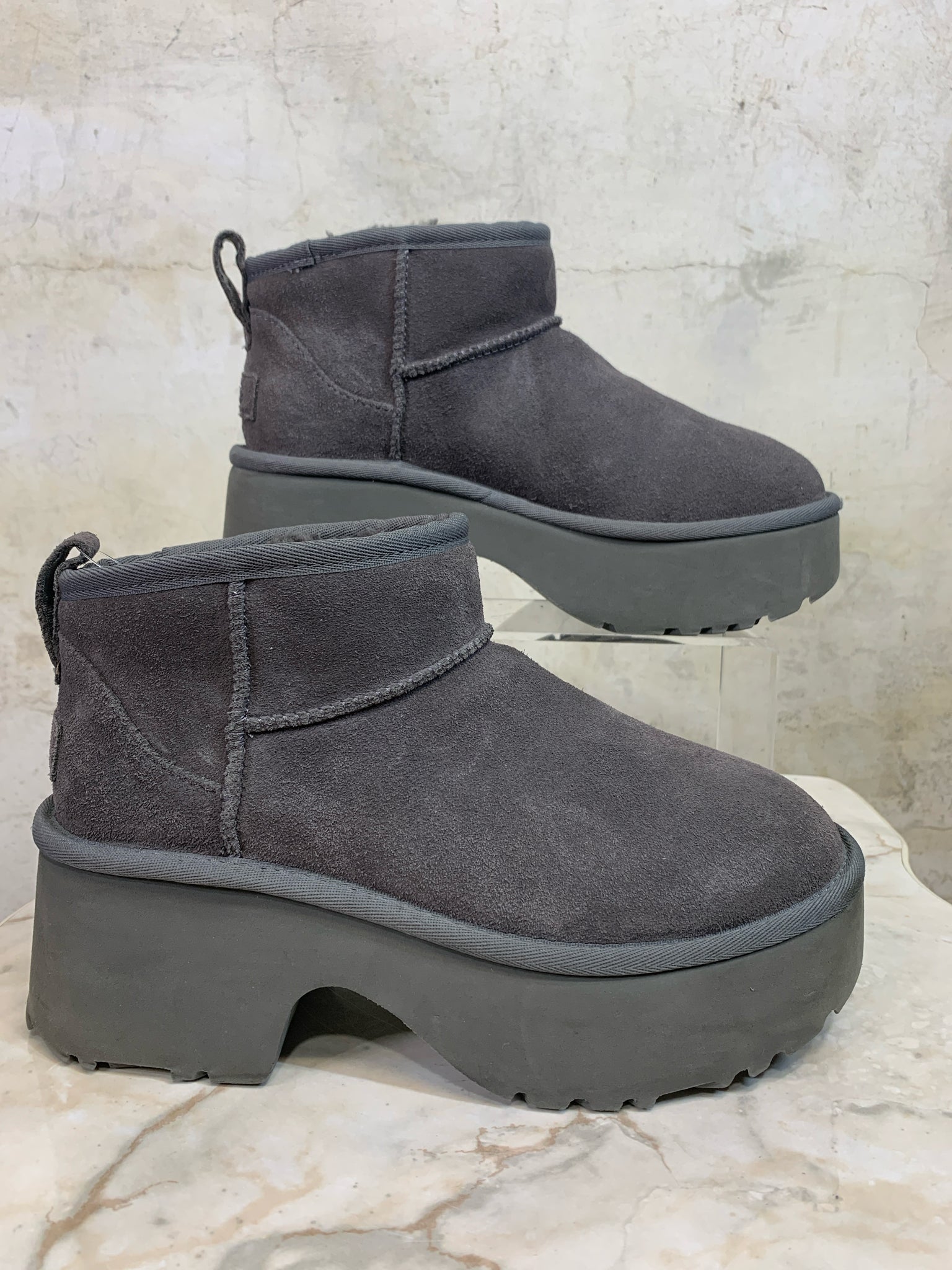 Shoe Size 8 UGG Grey NEW HEIGHTS PLATFORM Boots - Ankle + Calf