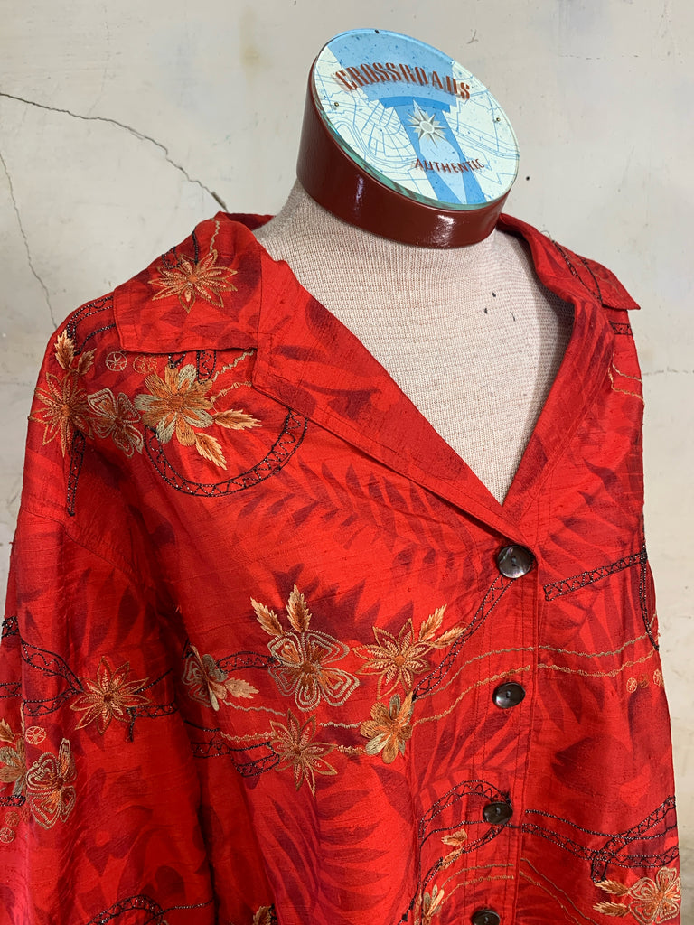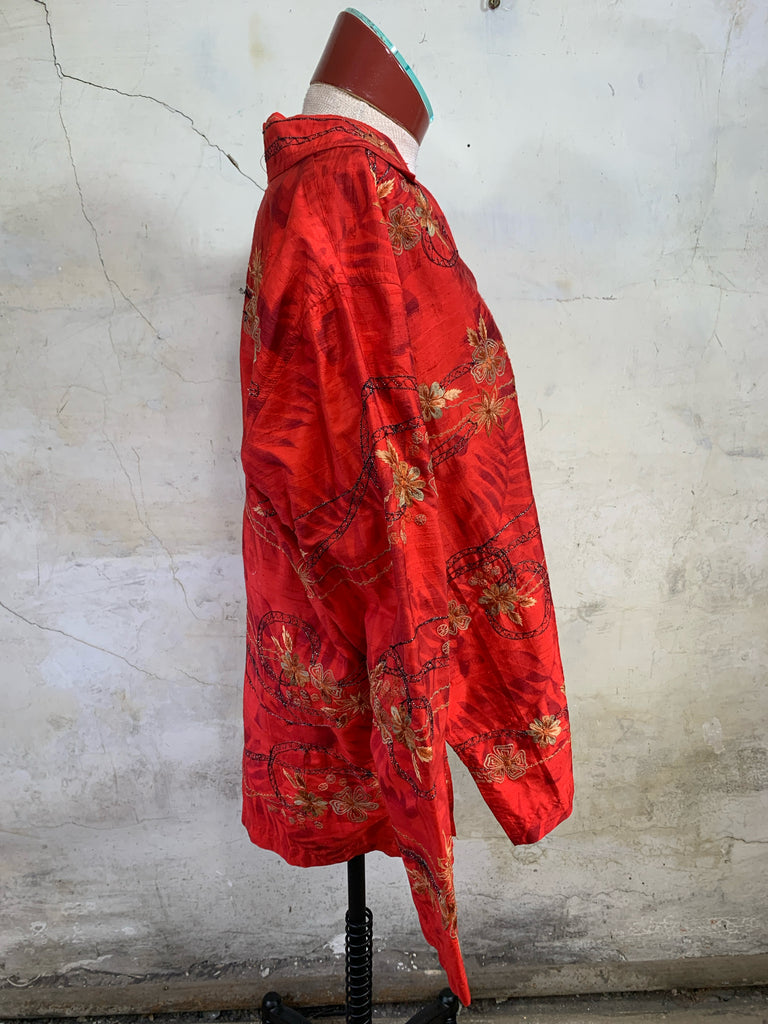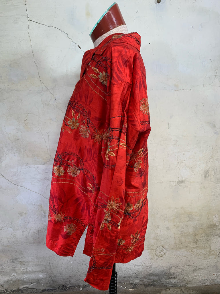 Size 2 (L) CHICOS RED SILK PRINT Vintage Long Sleeve Shirt - RED SILK PRINT / 2 (L) is backordered and will ship as soon as it is back in stock.