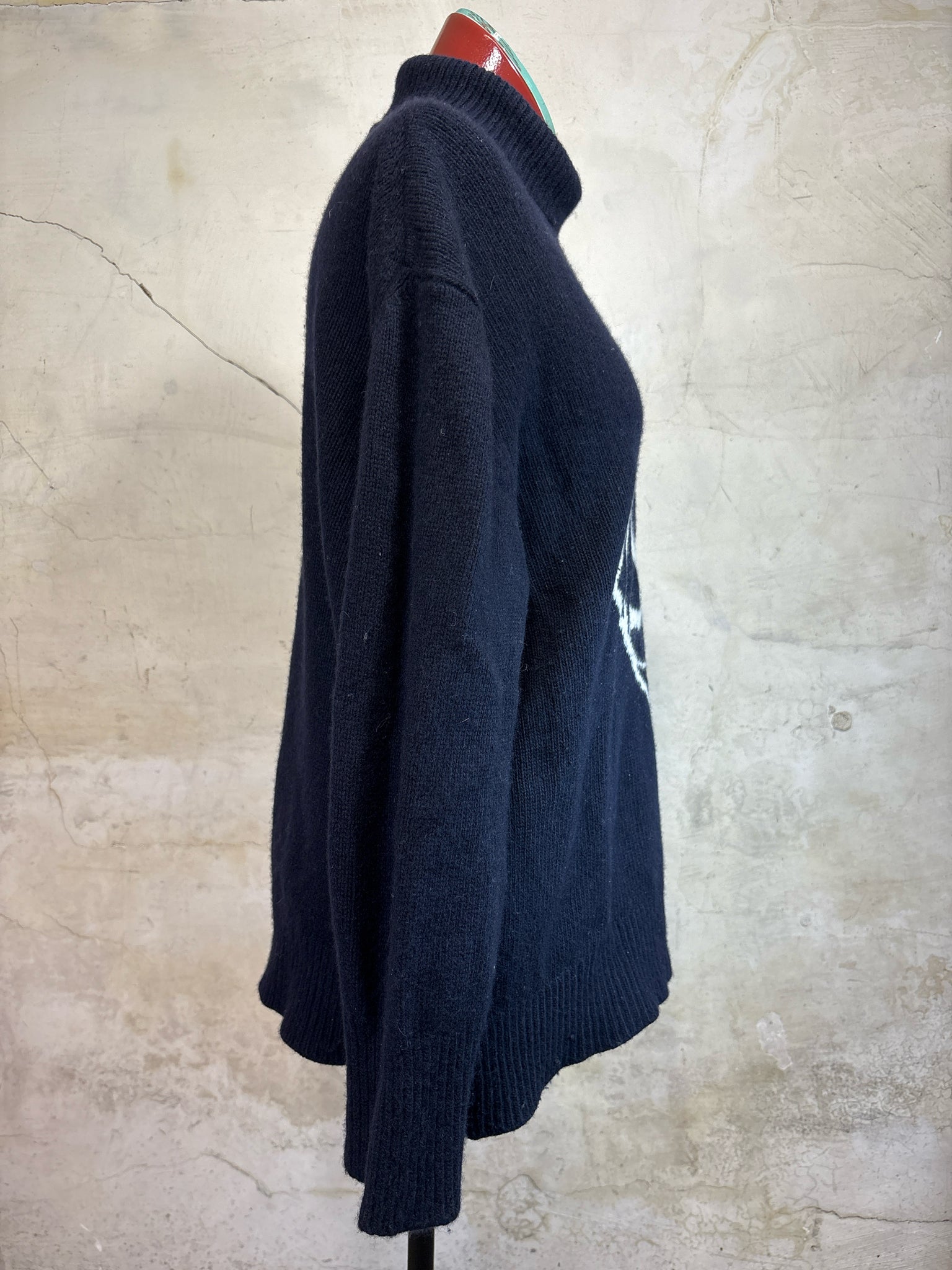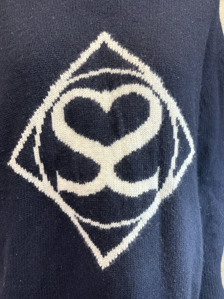 Size 2 (M) SANDRO PARIS Navy Print Sweater - Navy Print / 2 (M) is backordered and will ship as soon as it is back in stock.