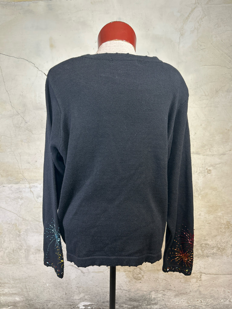Size L ARRIVISTE Black Print Vintage Sweater - Black Print / L is backordered and will ship as soon as it is back in stock.
