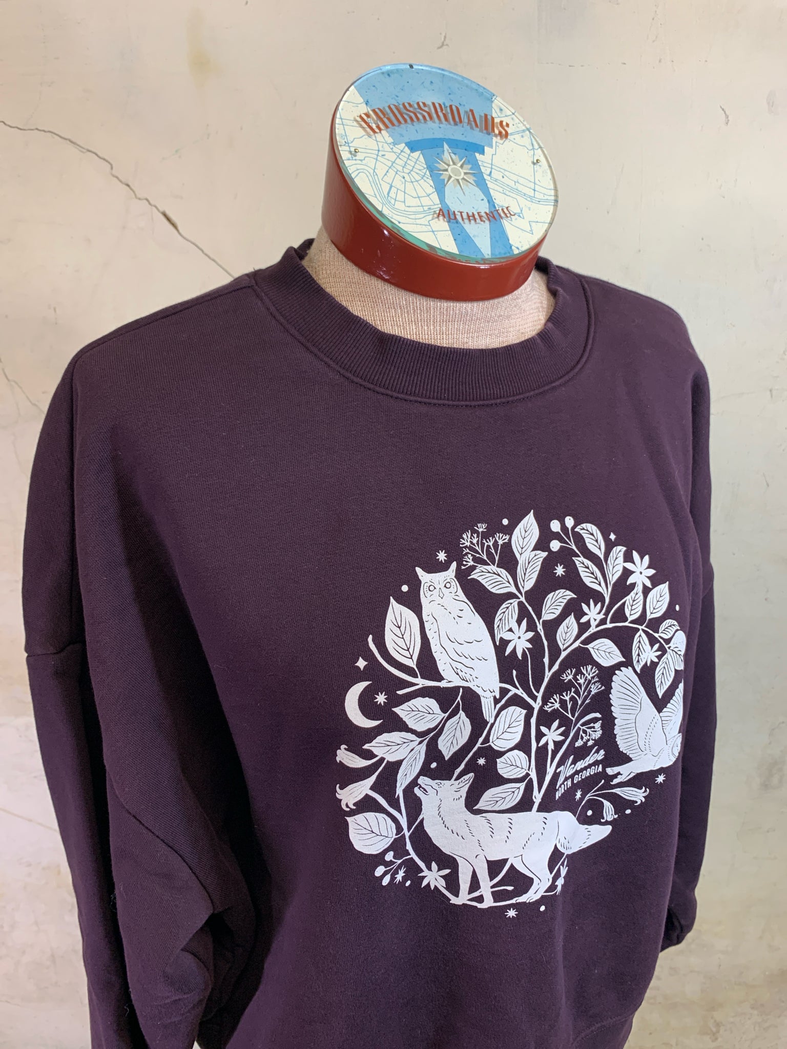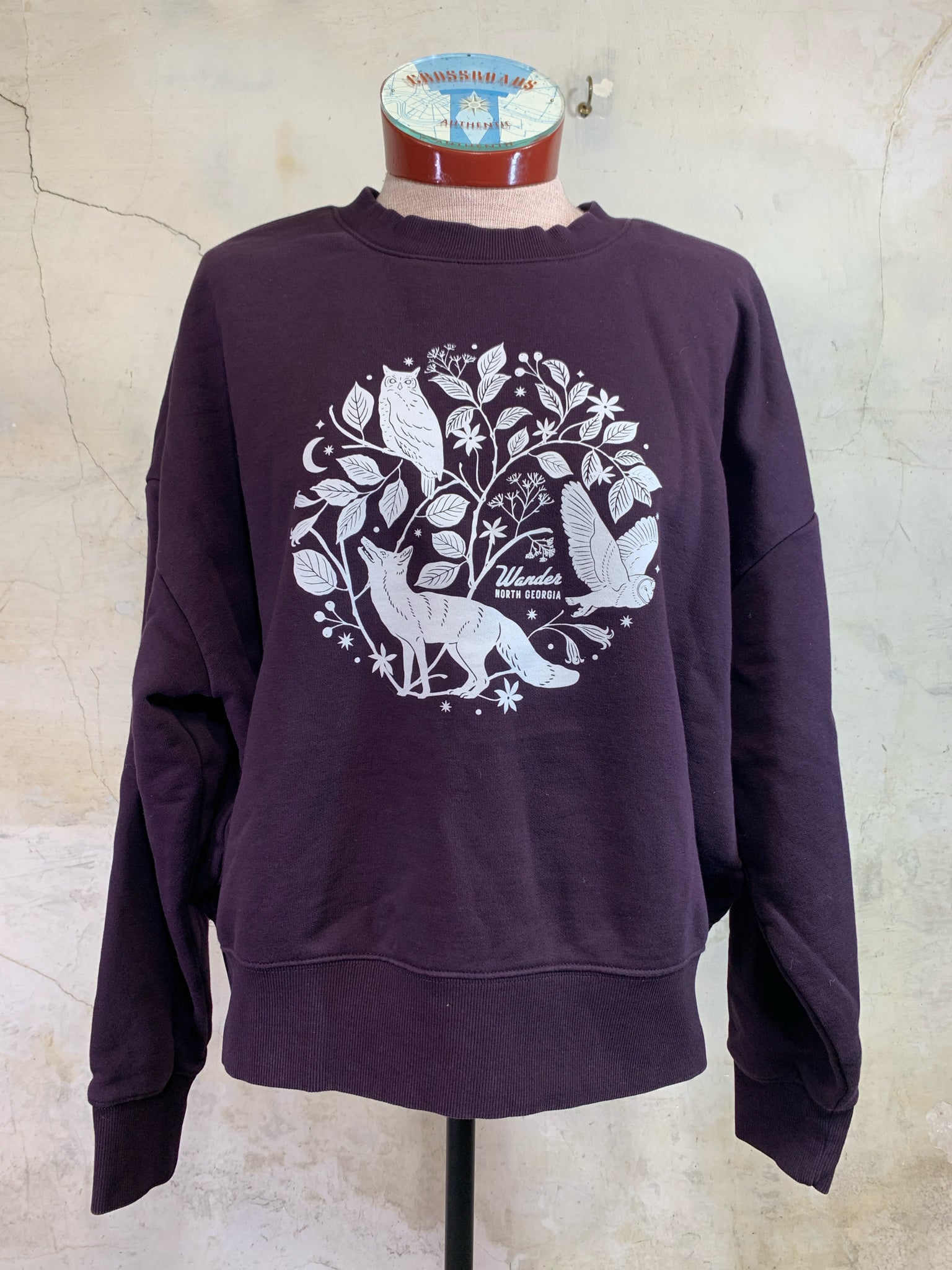 Size M WANDER Purple Print Sweatshirt - Purple Print / M is backordered and will ship as soon as it is back in stock.