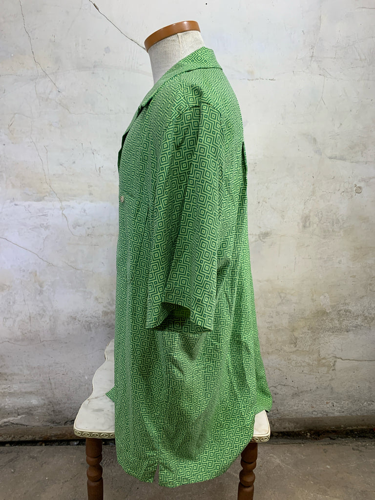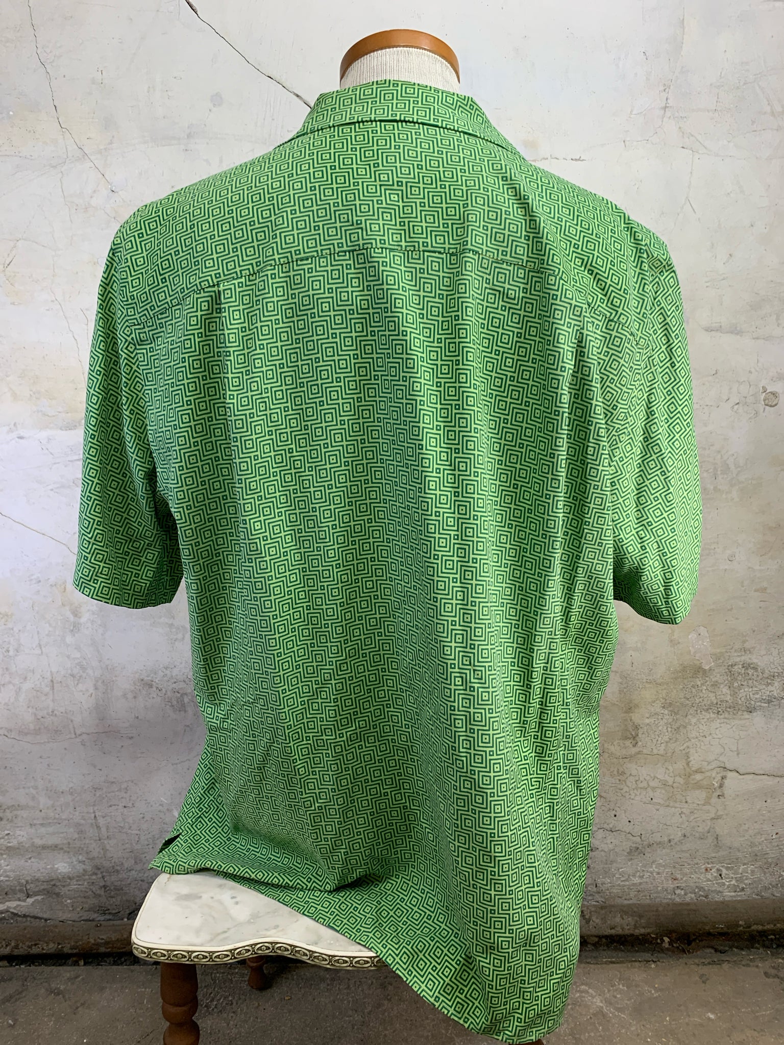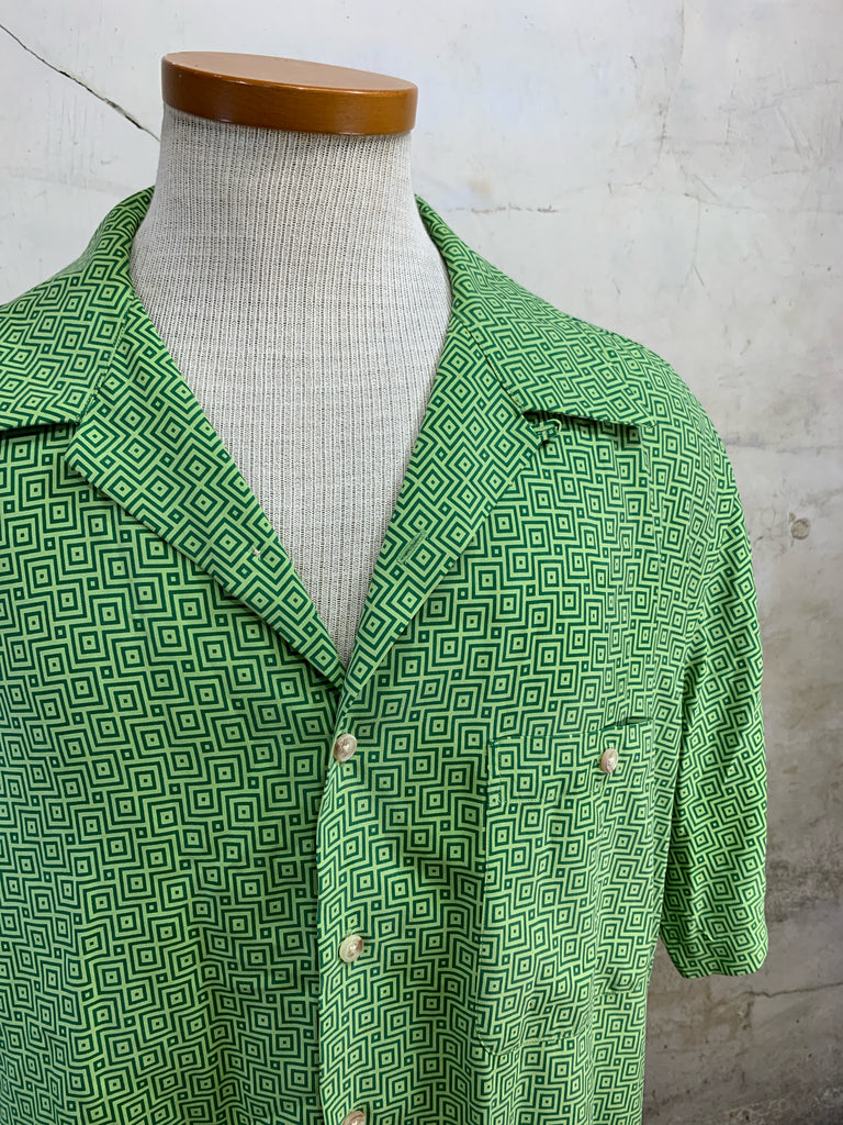 Size MENS L PAUL FREDRICK Green Print 100% SILK Short Sleeve Shirt - Green Print / MENS L is backordered and will ship as soon as it is back in stock.