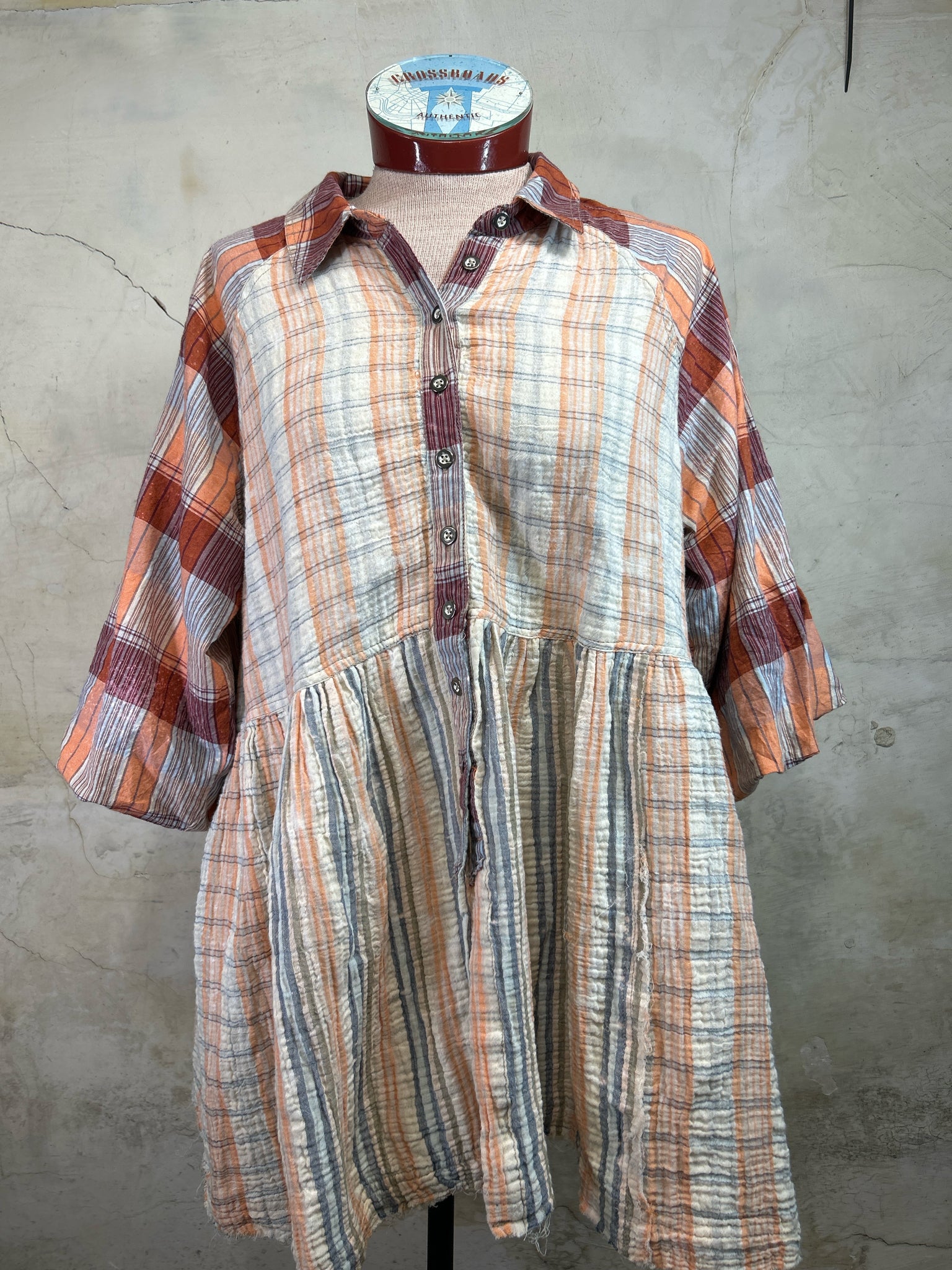 Size S WE THE FREE cream stripes/plaid Dress - cream stripes/plaid / S is backordered and will ship as soon as it is back in stock.