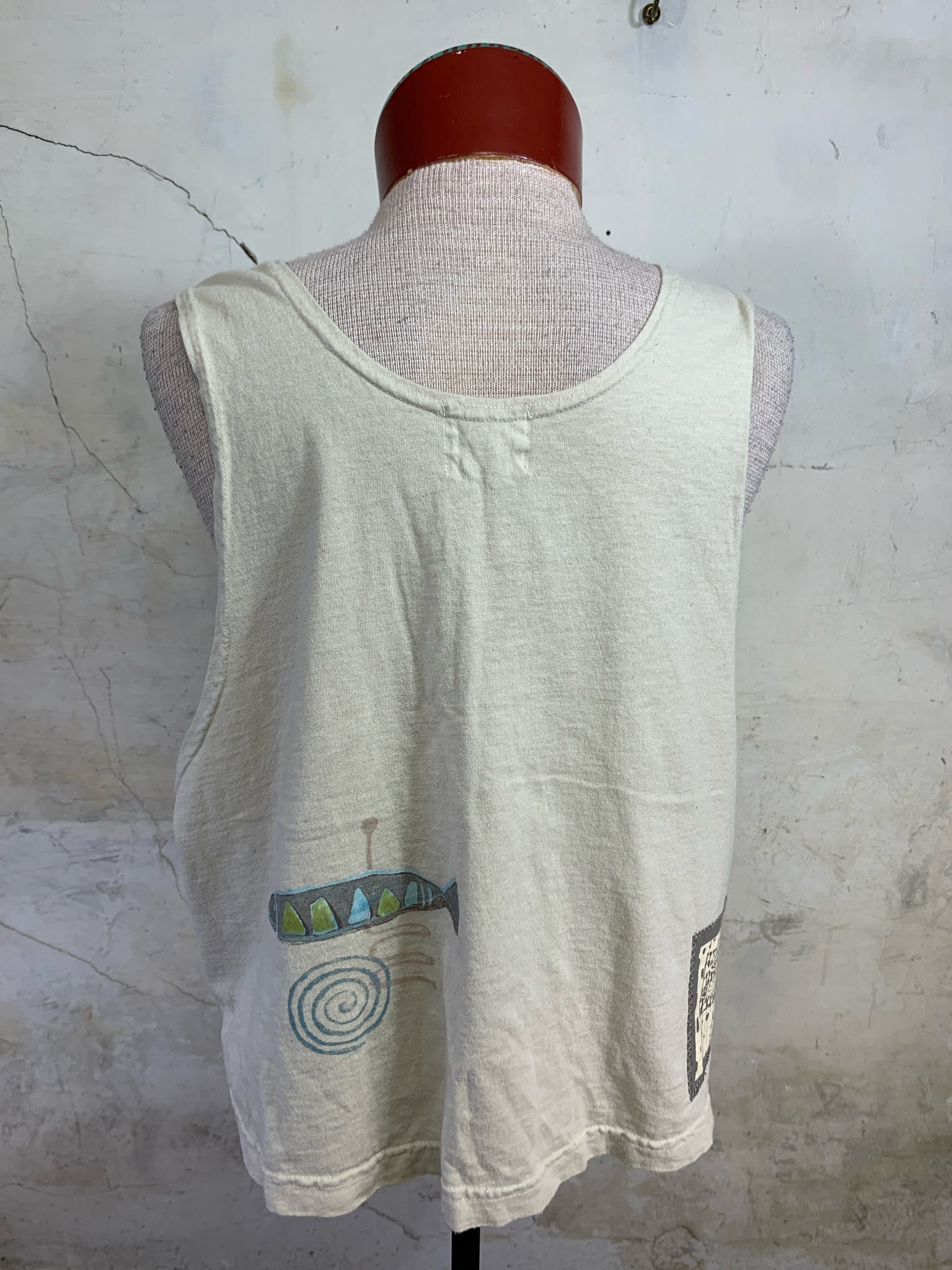 Size up to sz 10 BLUE FISH CREAM PRINT Tank Top - CREAM PRINT / up to sz 10 is backordered and will ship as soon as it is back in stock.