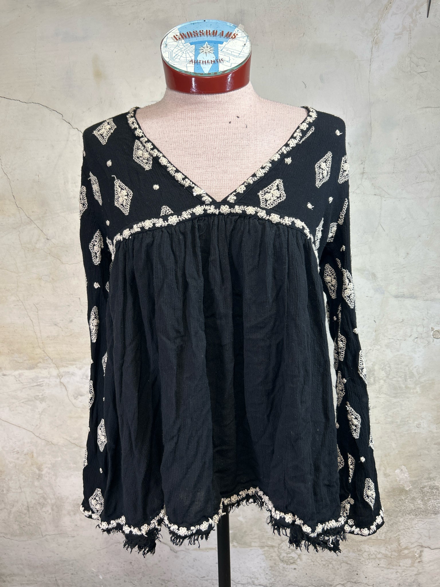 Size XS FREE PEOPLE BLACK/TAN EMBROIDERY Tunic - BLACK/TAN EMBROIDERY / XS is backordered and will ship as soon as it is back in stock.