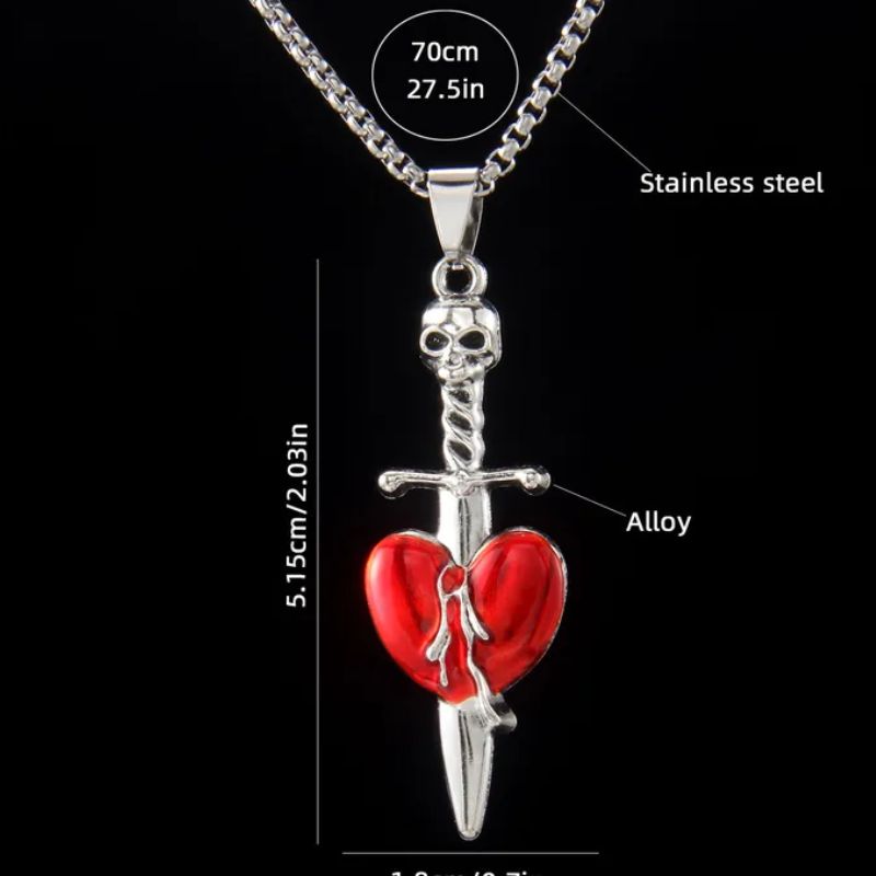 Skull Knife Heart Necklace - Red is backordered and will ship as soon as it is back in stock.