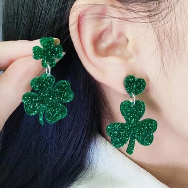 St Patrick's Day Sparkly Shamrock Earrings - Whole is backordered and will ship as soon as it is back in stock.