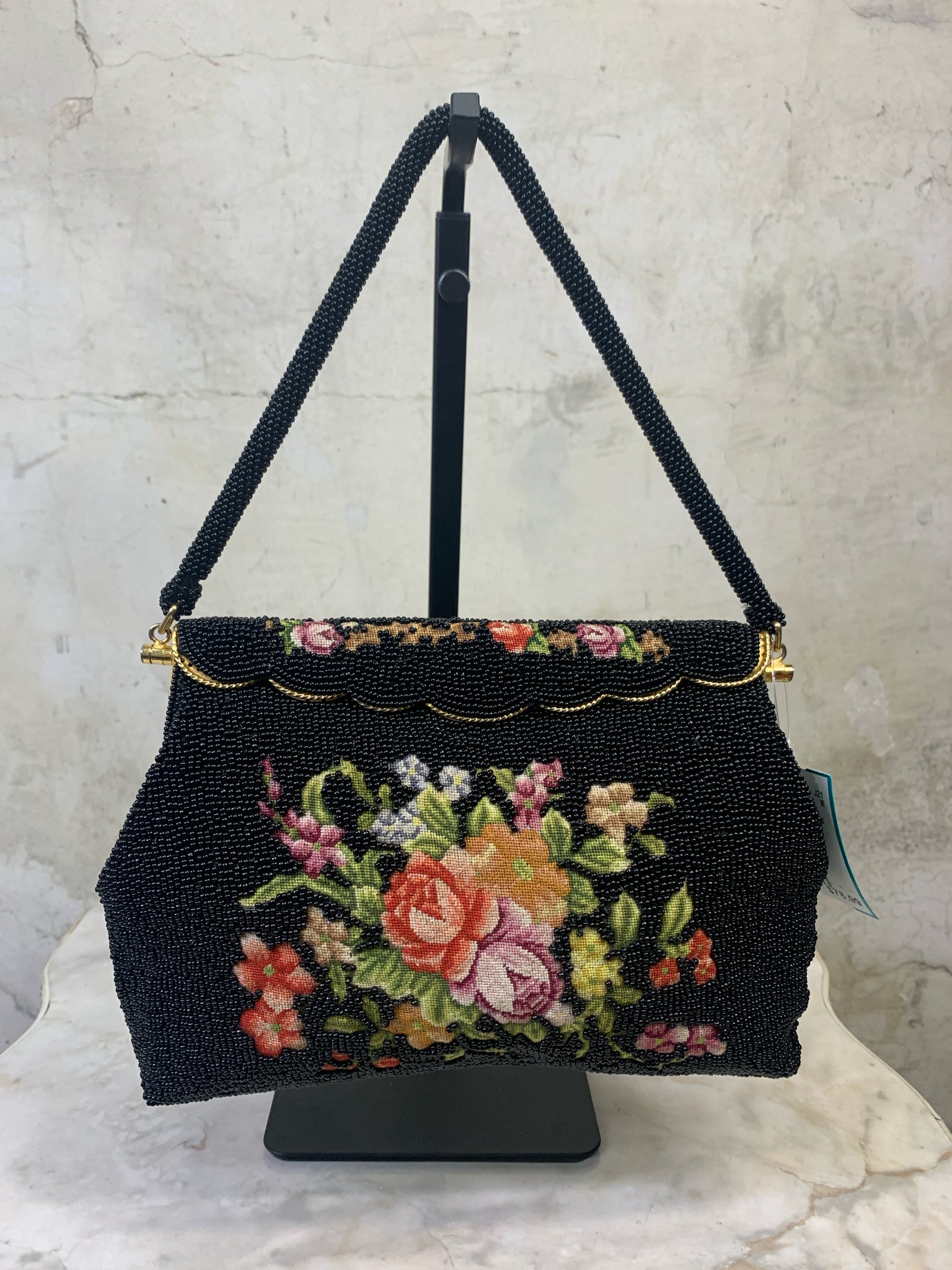 VINTAGE Black 1950s/60s Beaded Floral Purse - Black is backordered and will ship as soon as it is back in stock.