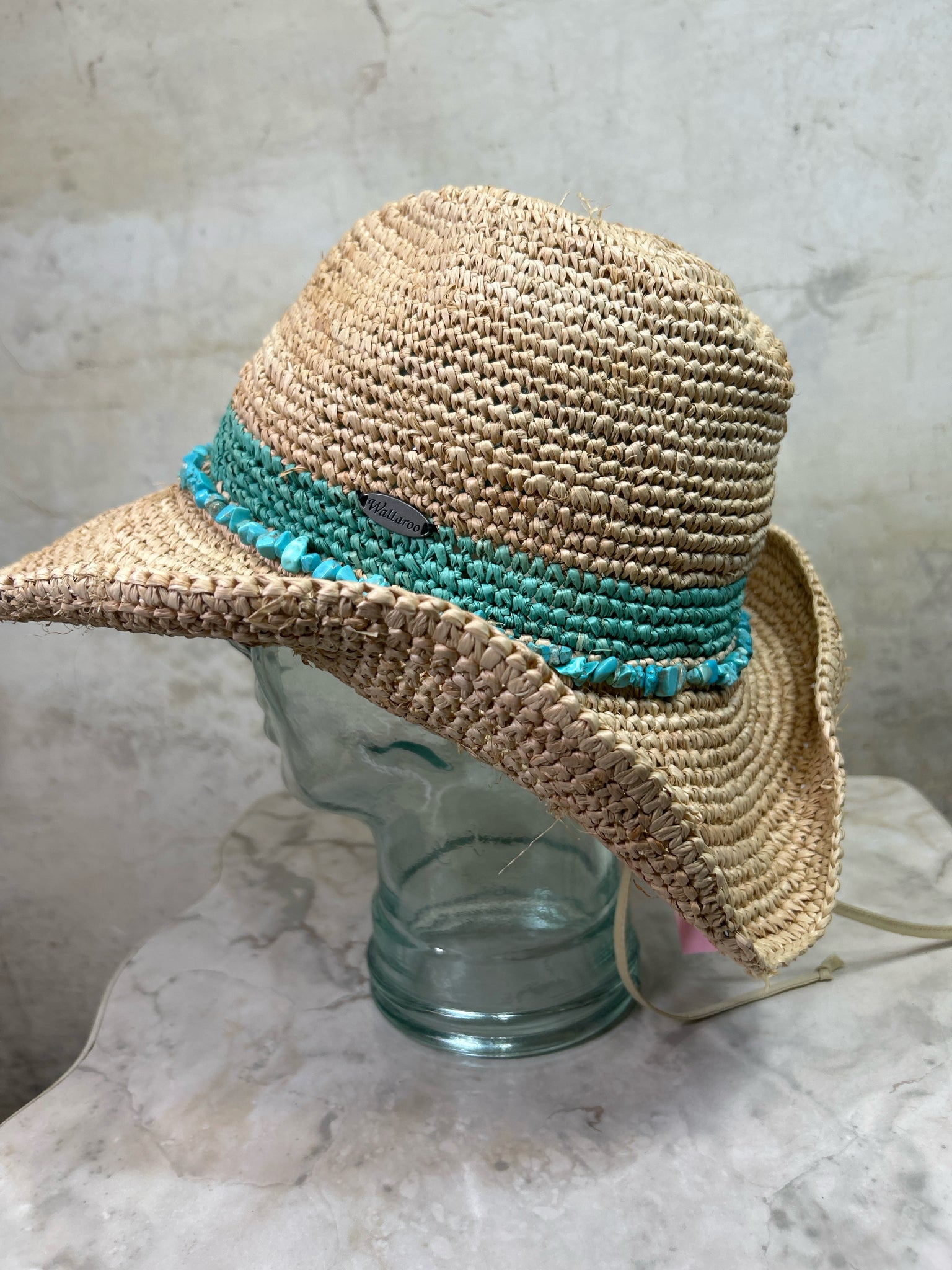 WALLAROO STRAW TAHITIAN COWBOY HAT New with Tags Turquoise Hair - STRAW is backordered and will ship as soon as it is back in stock.
